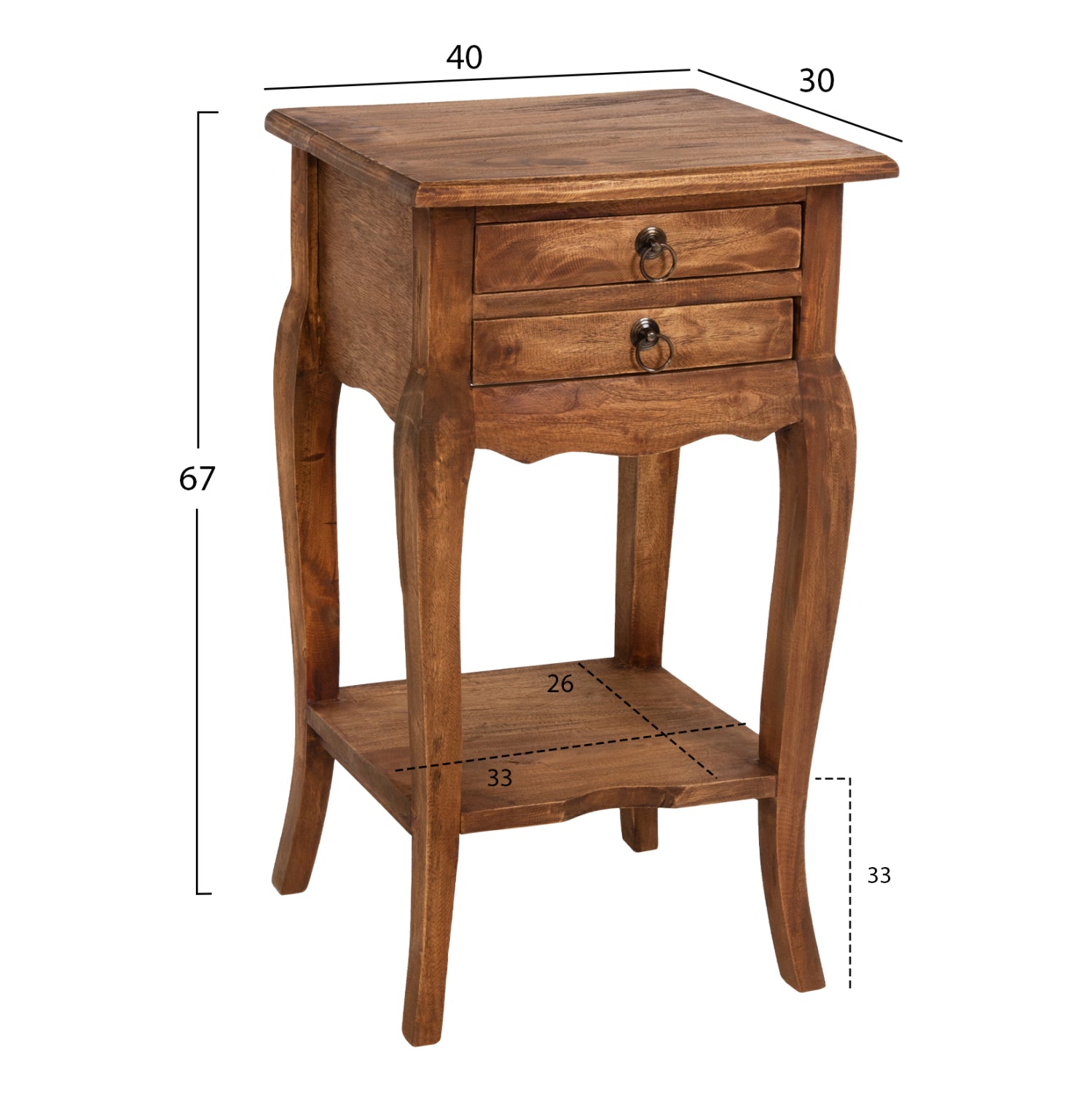 Το ΗΜ7904 είναι ένα όμορφο και πρακτικό βοηθητικό τραπεζάκι. Διαθέτει 2 μικρά συρταράκια με όμορφα χερούλια-κρίκους, ενώ η κάτω επιφάνεια (ραφάκι) είναι ιδιαιτέρως χρήσιμη. Το χρώμα του είναι ΦΥΣΙΚΟ ξύλου και είναι φτιαγμένο από ποιοτικό ξύλο. Οι υπάρχουσες ρωγμές ή αυτές που ενδέχεται να δημιουργηθούν με την πάροδο του χρόνου οφείλονται στην συστολή-διαστολή του ζωντανού οργανισμού που λέγεται μασίφ ξύλο, και δεν αποτελούν κατασκευαστικό ελάττωμα, δίνοντας πρωτοτυπία και μοναδικό design στο χώρο σας. Αυτά δεν αποτελούν ελάττωμα του προϊόντος.