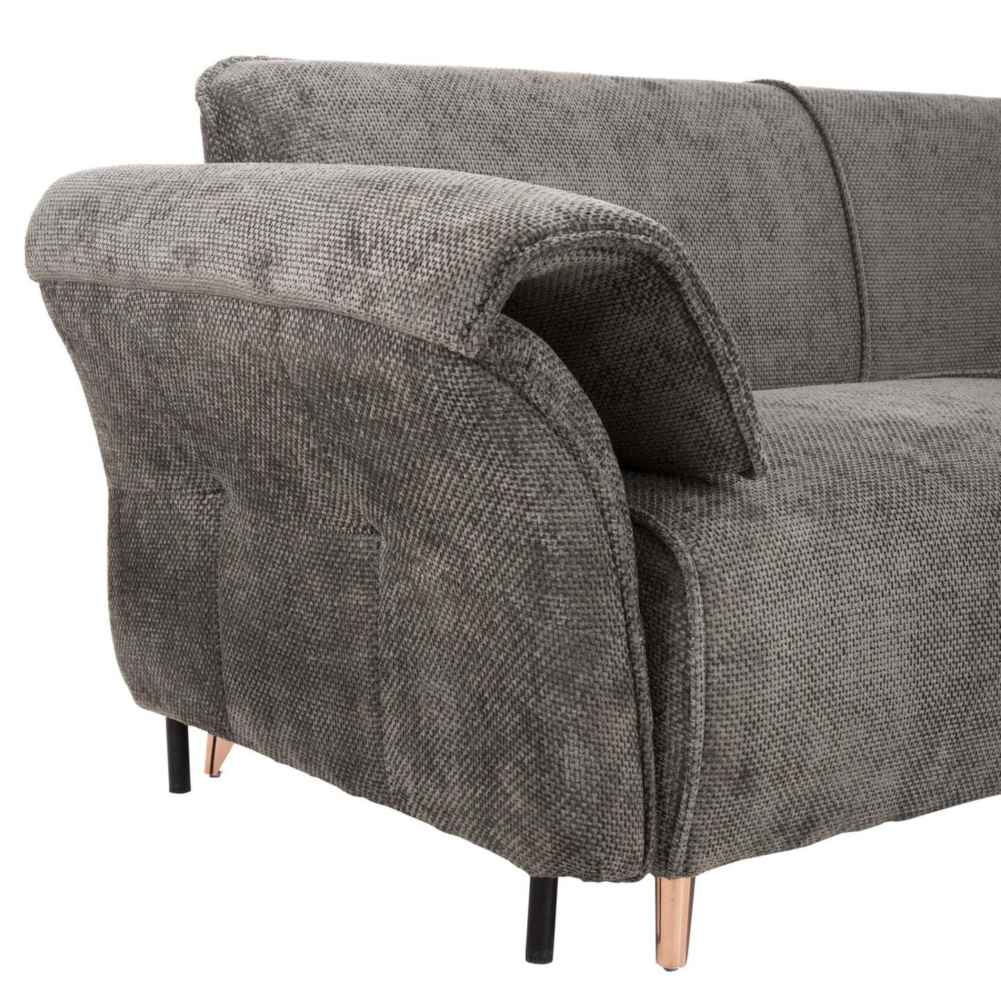 Τέλος, τα πόδια του καναπέ είναι ψηλά και μεταλλικά σε γυαλιστερό ΧΑΛΚΙΝΟ χρώμα, μια απόχρωση που δίνει την αίσθηση της καθαρότητας και της πολυτέλειας. Θέλετε κάτι περισσότερο;