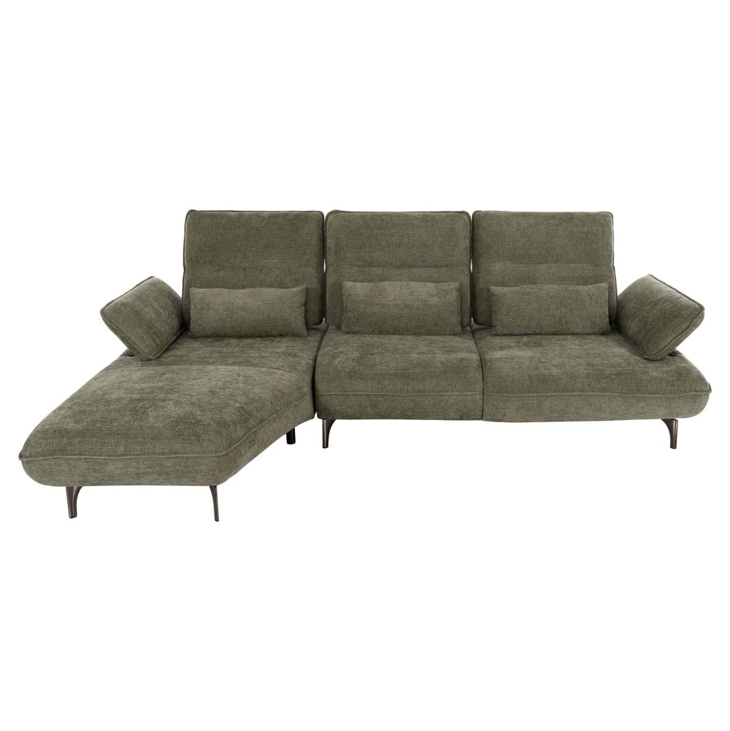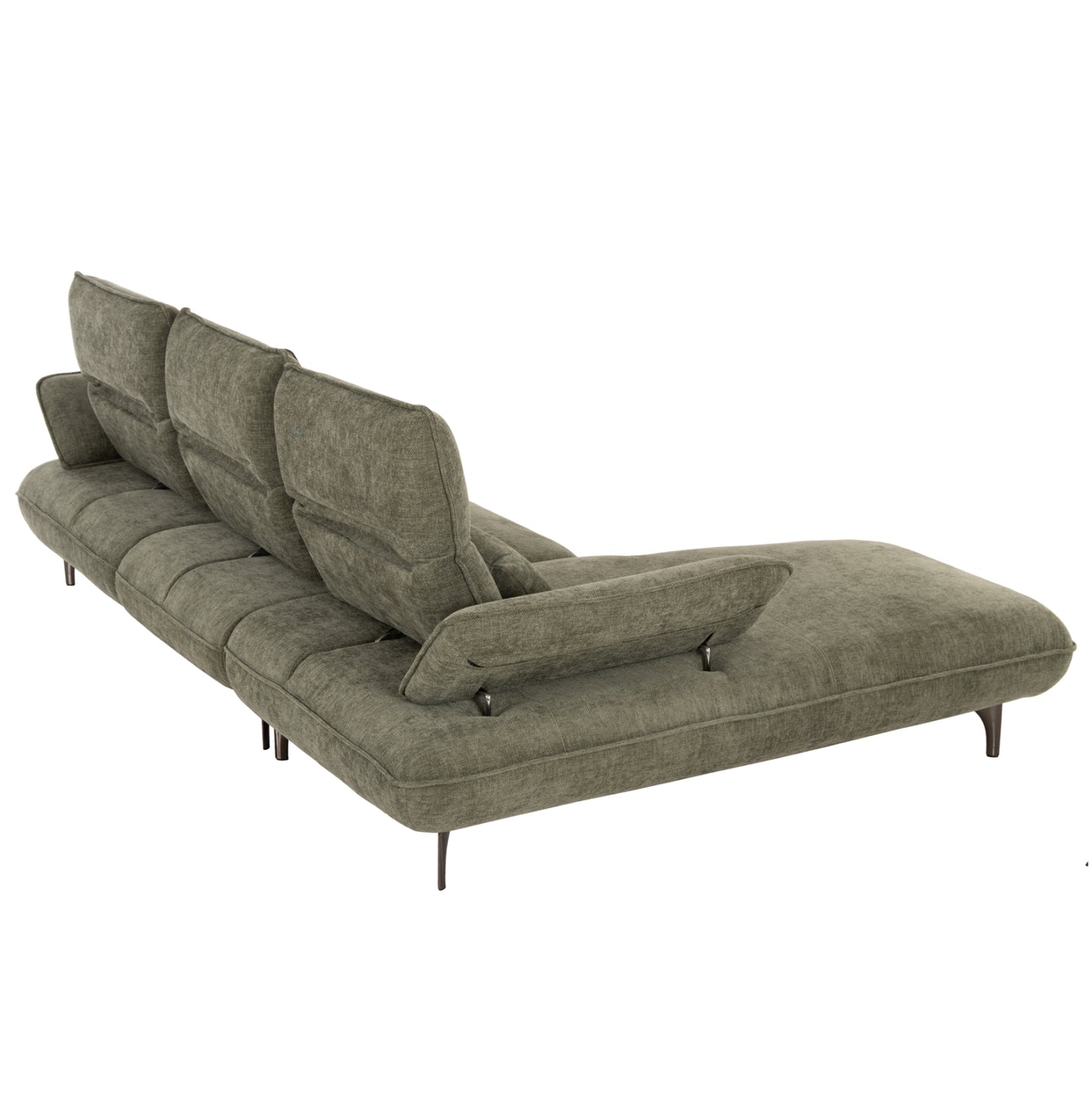 Σας παρουσιάζουμε τον CONVERT, έναν εκπληκτικό μεγάλο καναπέ-κρεβάτι σε διαμόρφωση ΑΡΙΣΤΕΡΗΣ γωνίας (όπως τον κοιτάς) επενδυμένο με ποιοτικό ύφασμα σε ΚΥΠΑΡΙΣΣΙ χρώμα. Το design του κλέβει τις εντυπώσεις και μαγνητίζει τα βλέμματα, χάρη στις ξεκάθαρες «γραμμές» του. Τα μπράτσα έχουν την μορφή μαξιλαριών αλλά είναι μέρος του καναπέ και μπορούν με μεταλλικό ΙΝΟΧ μηχανισμό να ανεβοκατεβαίνουν σε 3 επίπεδα. Η πλάτη αποτελείται από 3 μεγάλα τετράγωνα μαξιλάρια τα οποία, όπως και τα μπράτσα, μετακινούνται με υφασμάτινα χερούλια και μεταλλικό μηχανισμό προς τα πίσω αφήνοντας αρκετό χώρο για ένα μονό κρεβάτι. Το κομμάτι που σχηματίζει την γωνία είναι ίδιας αισθητικής και ενώνεται με τον κυρίως καναπέ με κατακόρυφους αναρτήρες πάνελ. Το κάθισμα διαθέτει γεμίσματα αφρού μεσαίας σκληρότητας σε συνδυασμό με ελατήρια pocket springs, προσφέροντας απαράμιλλη άνεση. Τέλος, την εικόνα συμπληρώνουν τα ψηλά σκούρα ασημί μεταλλικά πόδια, αλλά και τα 3 μικρά διακοσμητικά μαξιλαράκια.