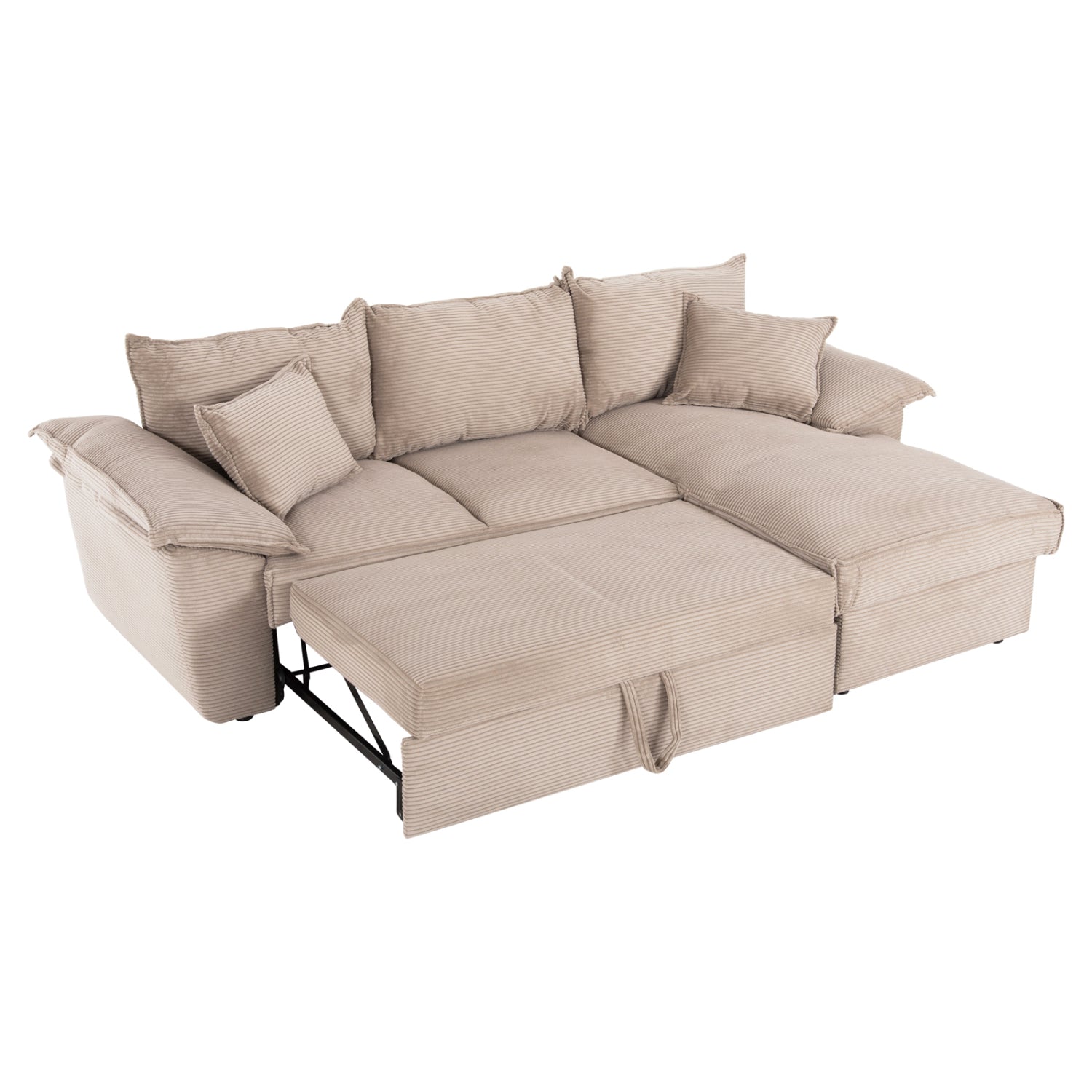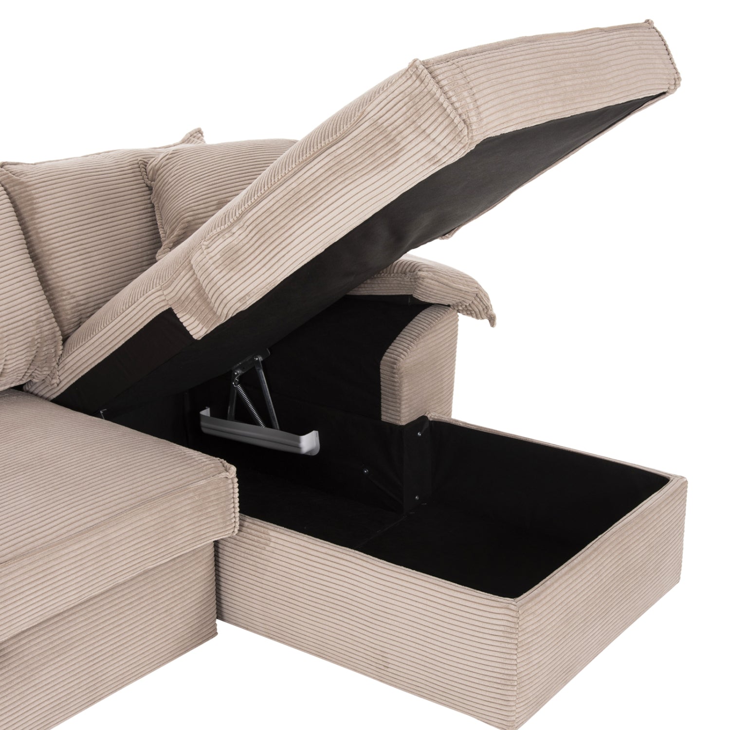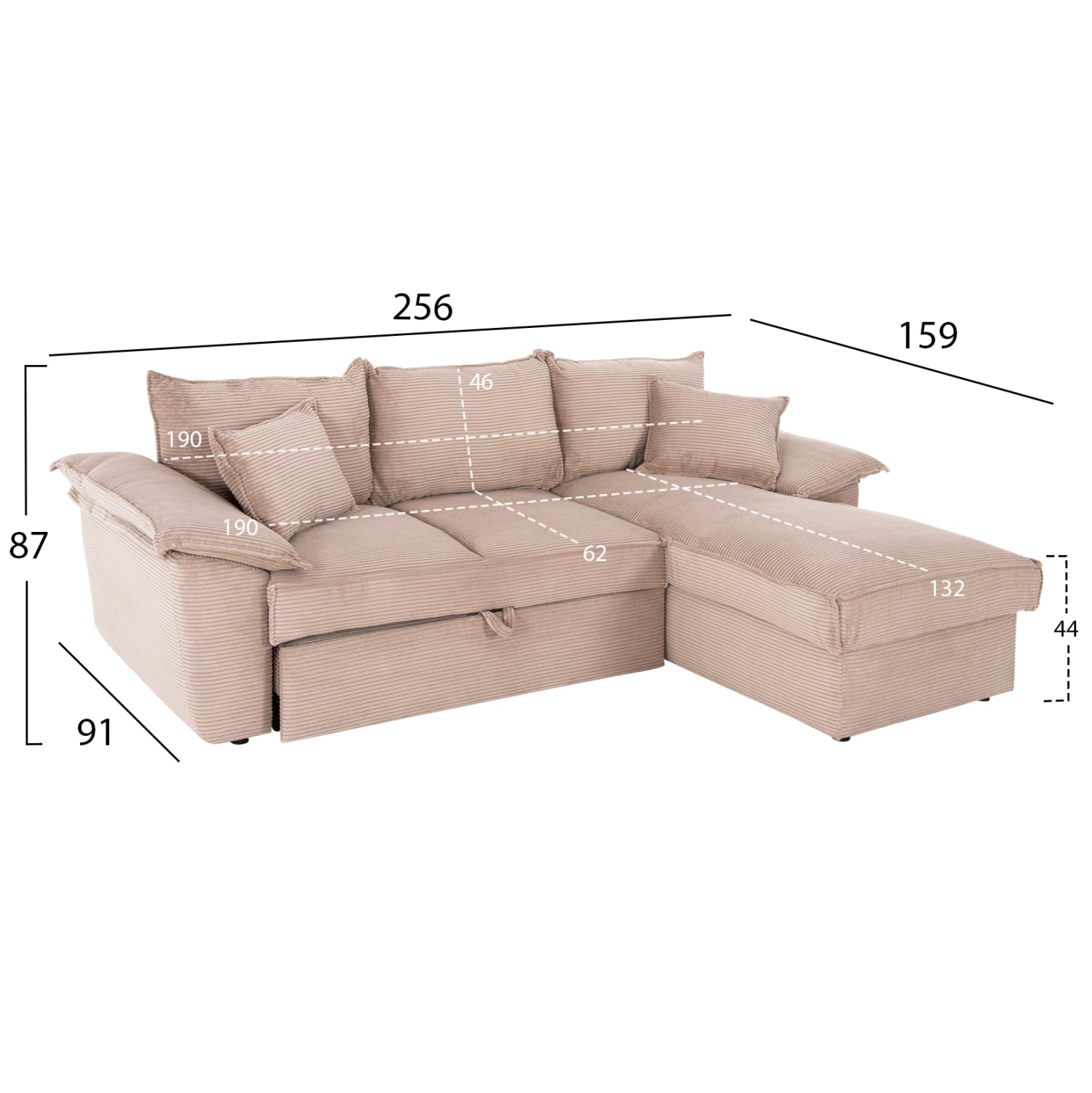 ΓΩΝΙΑΚΟΣ ΚΑΝΑΠΕΣ-ΚΡΕΒΑΤΙ ΜΕ ΑΠΟΘ.ΧΩΡΟ ALDO HM3276.01R ΜΠΕΖ ΥΦΑΣΜΑ 256x91-159x87Υεκ.