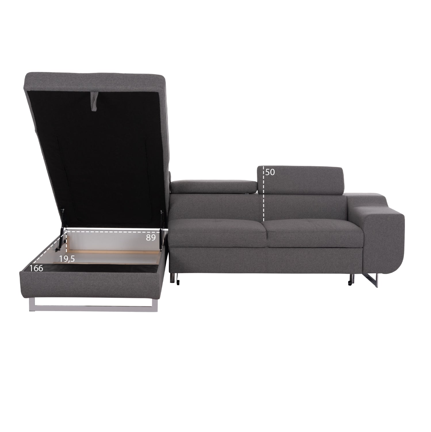 ΓΩΝΙΑΚΟΣ ΚΑΝΑΠΕΣ-ΚΡΕΒΑΤΙ ΜΕ ΑΠΟΘ.ΧΩΡΟ ENCORE HM3301.01L ΓΚΡΙ ΥΦΑΣΜΑ 285x205x90Υεκ.
