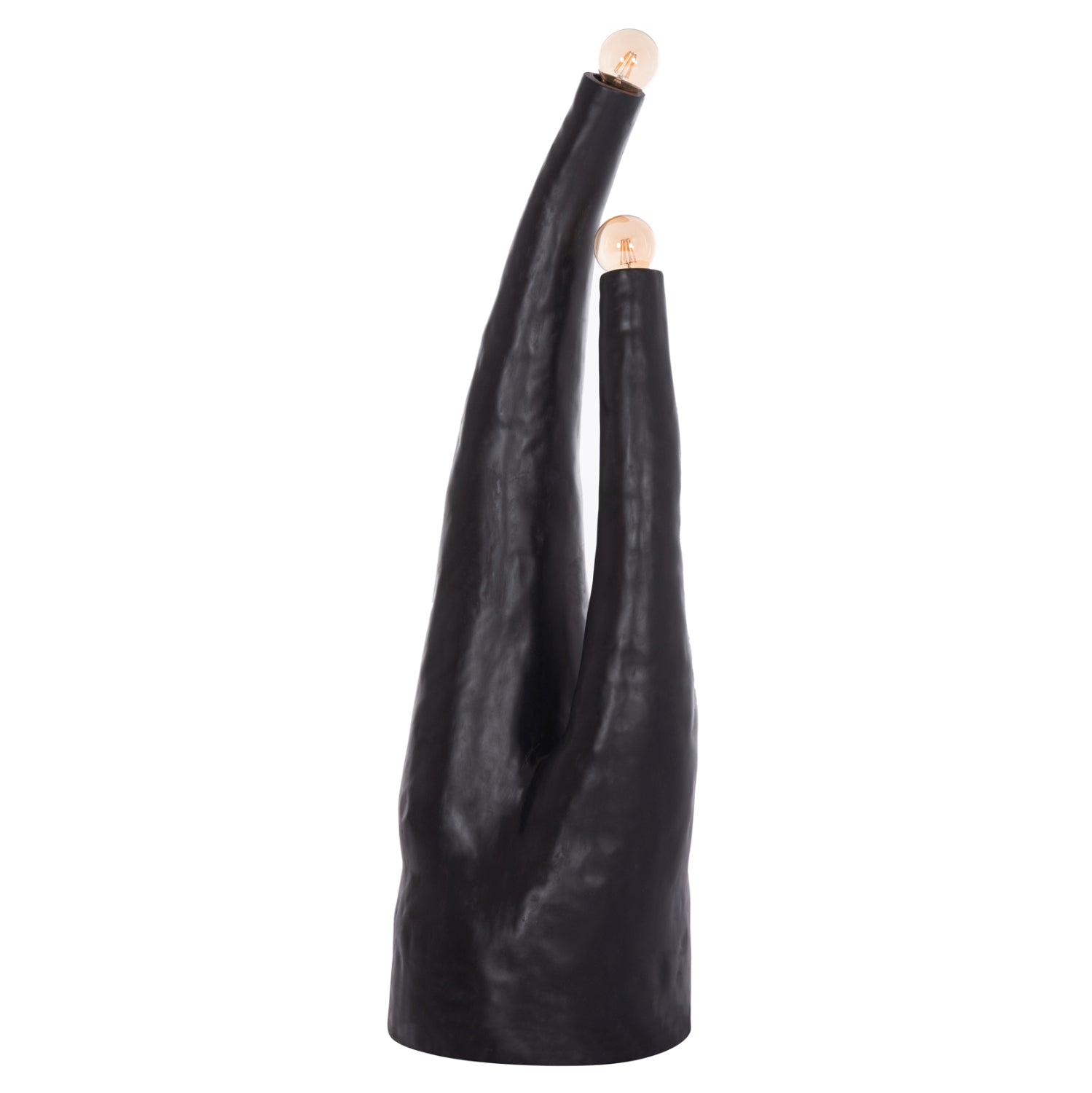 Το χειροποίητο και επιβλητικό διακοσμητικό φωτιστικό δαπέδου TUSKEN έχει ακανόνιστο αλλά μοντέρνο design με δύο λάμπες σε διαφορετικά ύψη. Διαθέτει μεγάλο καλώδιο τροφοδοσίας με διακόπτη on/off. Είναι κατασκευασμένο εξολοκλήρου από Fiber Cement σε ΜΑΥΡΟ χρώμα και αποτελεί ιδανικό συμπλήρωμα τόσο για το σπίτι, όσο και για επαγγελματικούς χώρους, όπως ξενοδοχεία, AirBnB, κτλ.