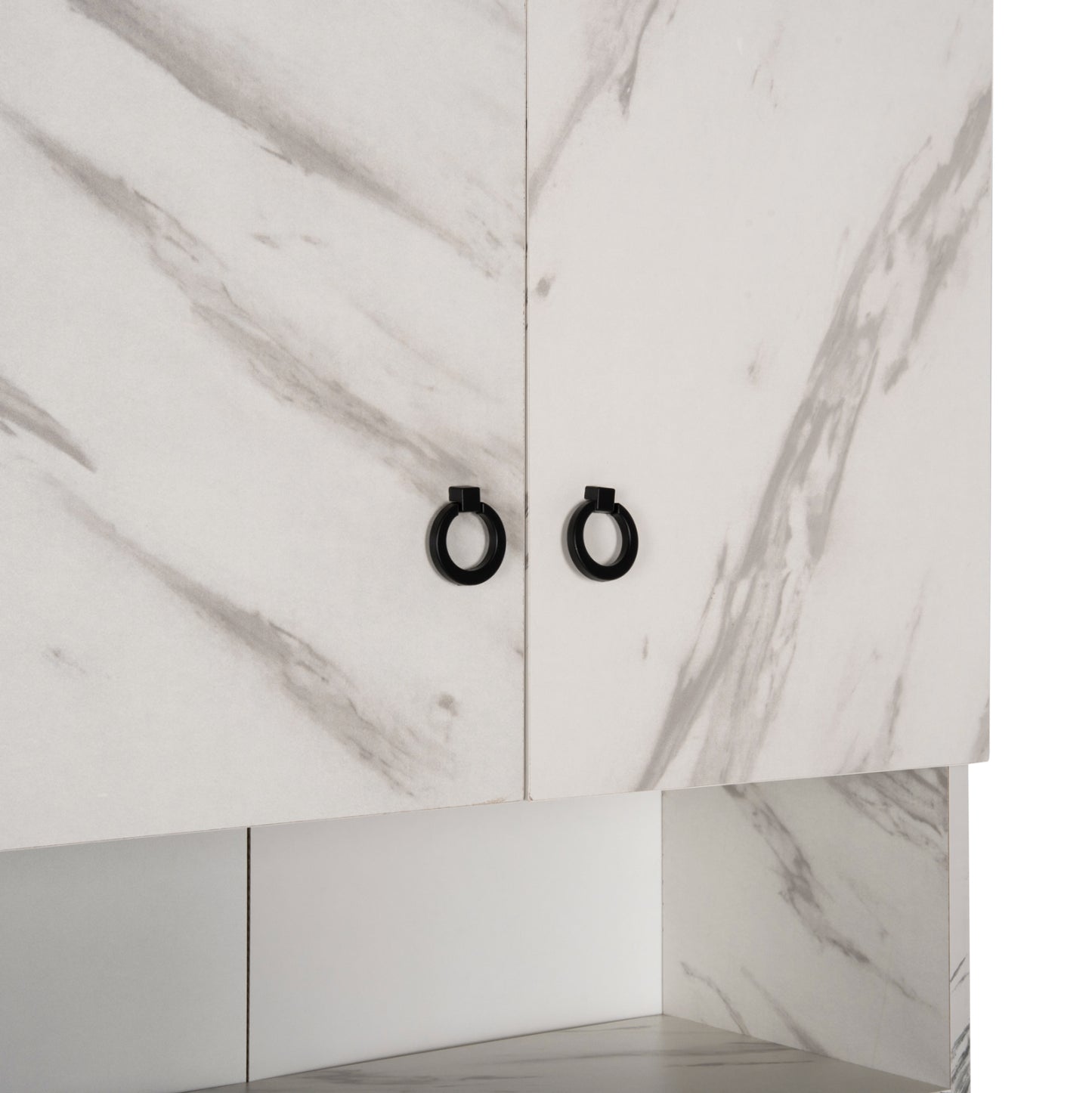 Σας παρουσιάζουμε το καινούριο έπιπλο για το πλυντήριο TERRY. Κατασκευασμένο από μελαμίνη σε όμορφο ΛΕΥΚΟ ΜΑΡΜΑΡΟ χρώμα, αποτελείται από ένα δίφυλλο ντουλάπι στο επάνω μέρος και 2 ανοιχτά ράφια στην μέση.