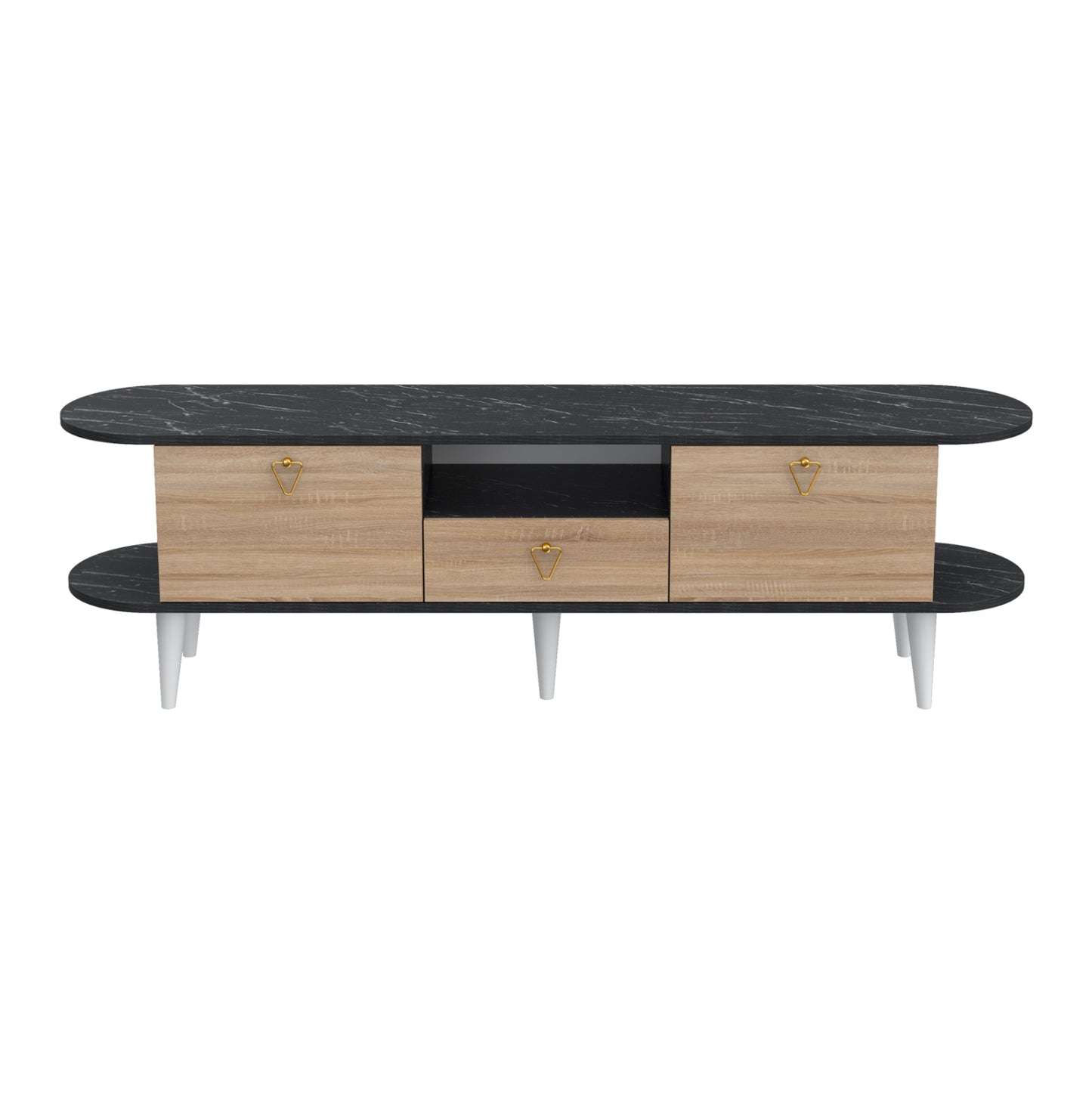 ΕΠΙΠΛΟ ΤΗΛΕΟΡΑΣΗΣ BEECON HM18185 ΜΕΛΑΜΙΝΗ ΣΕ ΜΑΥΡΟ ΜΑΡΜΑΡΟ & ΣΟΝΑΜΑ-ΛΕΥΚΑ ΠΟΔΙΑ 180x36x53Υεκ.