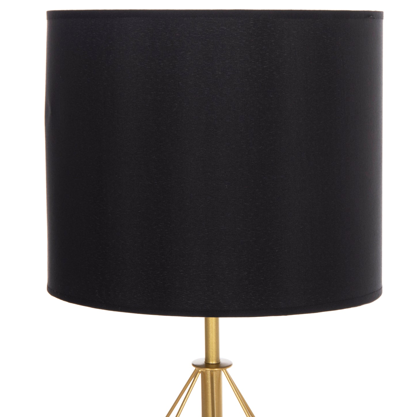 Φινέτσα και μοντέρνα γραμμή συναντώνται σε αυτό το επιτραπέζιο φωτιστικό. Βάση και κολώνα έχουν δώσει την θέση τους όμορφα σε ένα ΧΡΥΣΟ μεταλλικό πλέγμα σε σχήμα πολύγωνης πυραμίδας και στην κορυφή του κάθεται το μαύρο κυλινδρικό καπέλο, δημιουργώντας ένα σύνολο που είναι η επιτομή του μοντέρνου design εσωτερικών χώρων. Ειδικά, το μαύρο χρώμα του τυμπάνου πραγματικά δίνει την εντύπωση της πολυτέλειας χωρίς όριο. Αυτό το φωτιστικό είναι λιτό, κομψό και βολικό σε διαστάσεις παρέχοντας αμέτρητες δυνατότητες «δεσίματος» με την υπόλοιπη διακόσμησή σας. Εκτός από διάφορα δωμάτια του σπιτιού σας, μπορεί, επίσης, να ταιριάξει και σε επαγγελματικούς χώρους όπως εστιατόρια, καφέ, ξενοδοχεία κτλ.