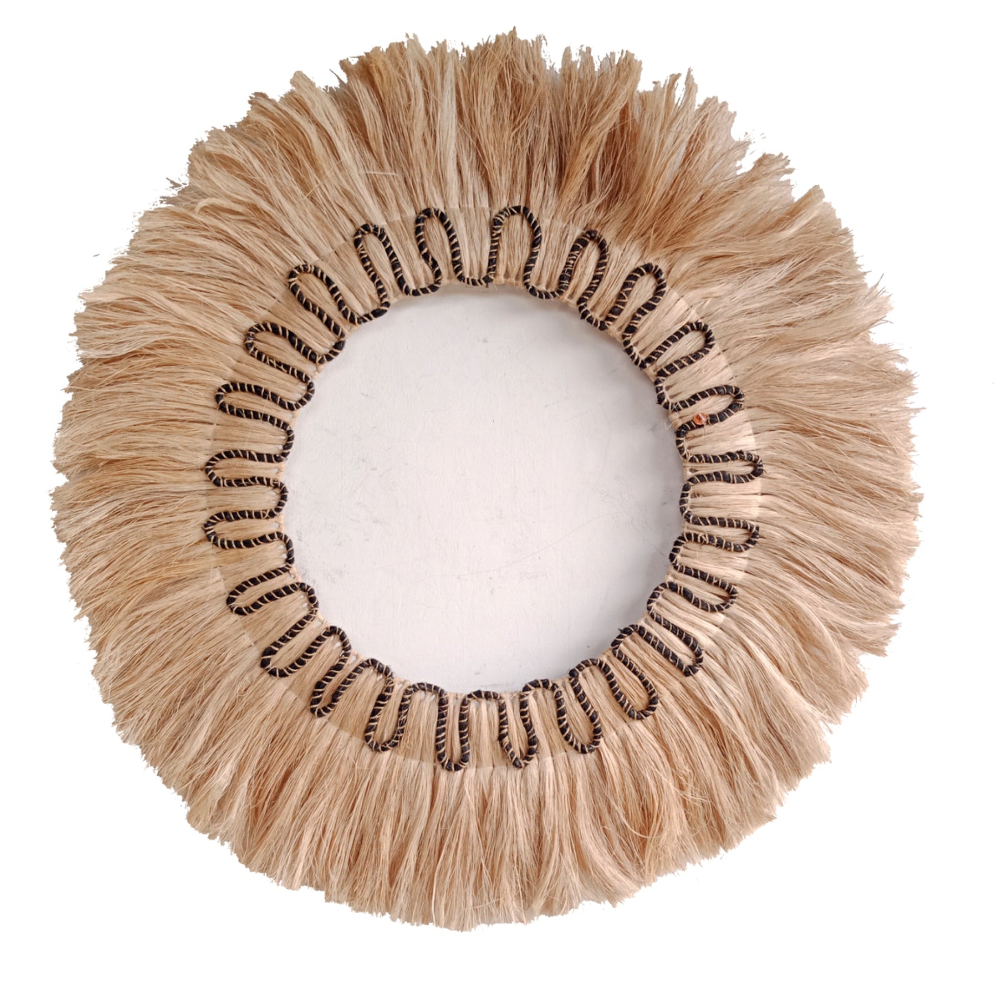O καθρέπτης ΗΜ7749 είναι πραγματικά ένα εντυπωσιακό κομμάτι στην διακόσμηση του χώρου σας! Το design του είναι όμορφο και λιτό με πλαίσιο από ίνες κάνναβης Μανίλας, το οποίο στο κέντρο του «φιλοξενεί» τον καθρέπτη. Οι ίνες είναι στο φυσικό τους χρώμα με μαύρο περίτεχνο δέσιμο γύρω από τον καθρέπτη, και οι διαστάσεις όλης της κατασκευής είναι ιδανικές.