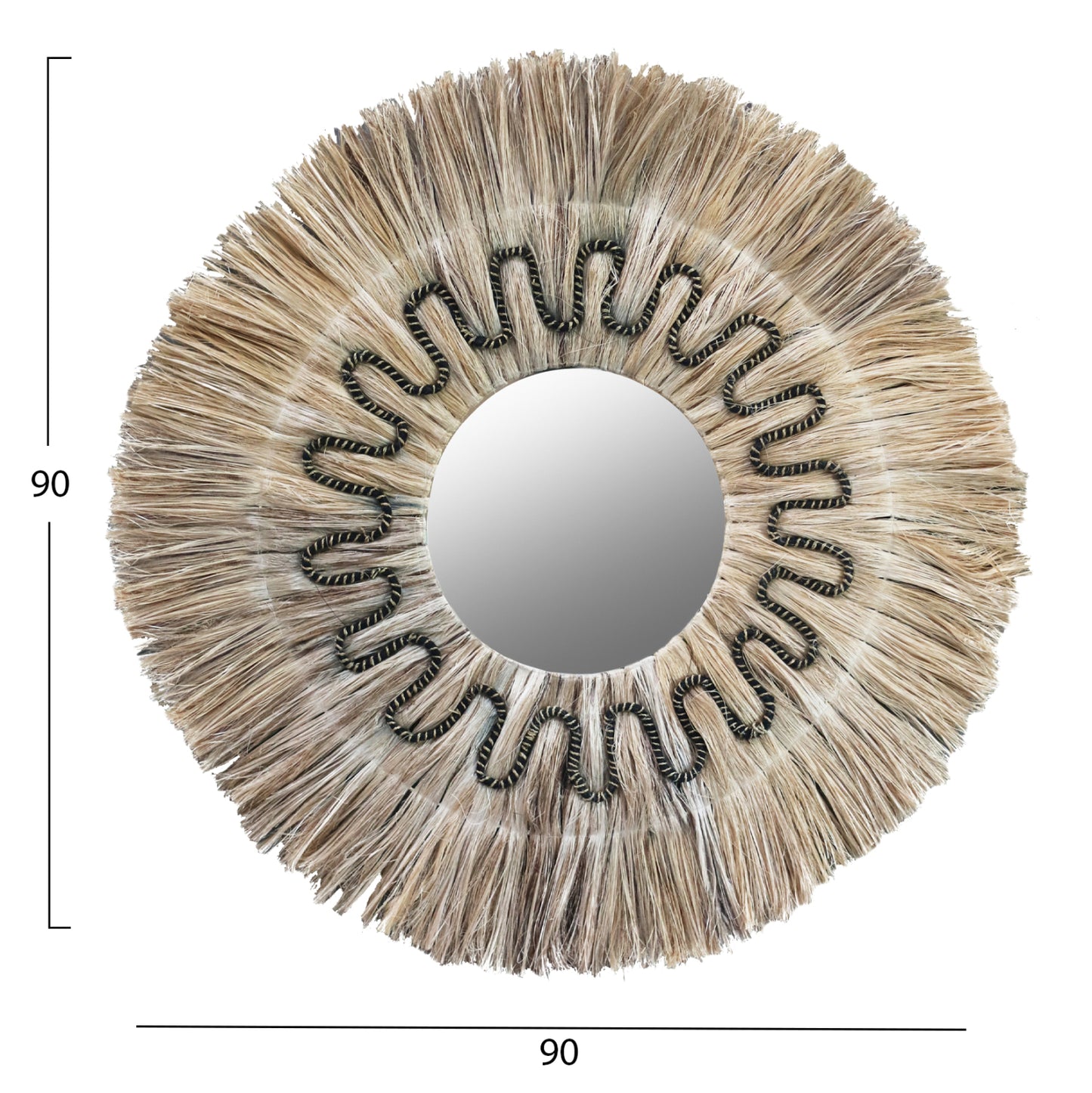 O καθρέπτης ΗΜ7750 είναι πραγματικά ένα εντυπωσιακό κομμάτι στην διακόσμηση του χώρου σας! Το design του είναι όμορφο και λιτό με πλαίσιο από ίνες κάνναβης Μανίλας, το οποίο στο κέντρο του «φιλοξενεί» τον καθρέπτη. Οι ίνες είναι στο φυσικό τους χρώμα με μαύρο περίτεχνο δέσιμο γύρω από τον καθρέπτη, και οι διαστάσεις όλης της κατασκευής είναι ιδανικές.