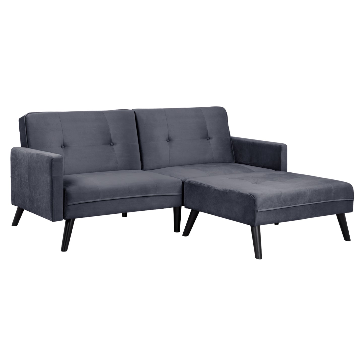 Καναπές γωνία κρεβάτι, με υποπόδιο, επενδεδυμένος με βελούδινο ύφασμα σε γκρι απόχρωση 211X158X83Y εκ.