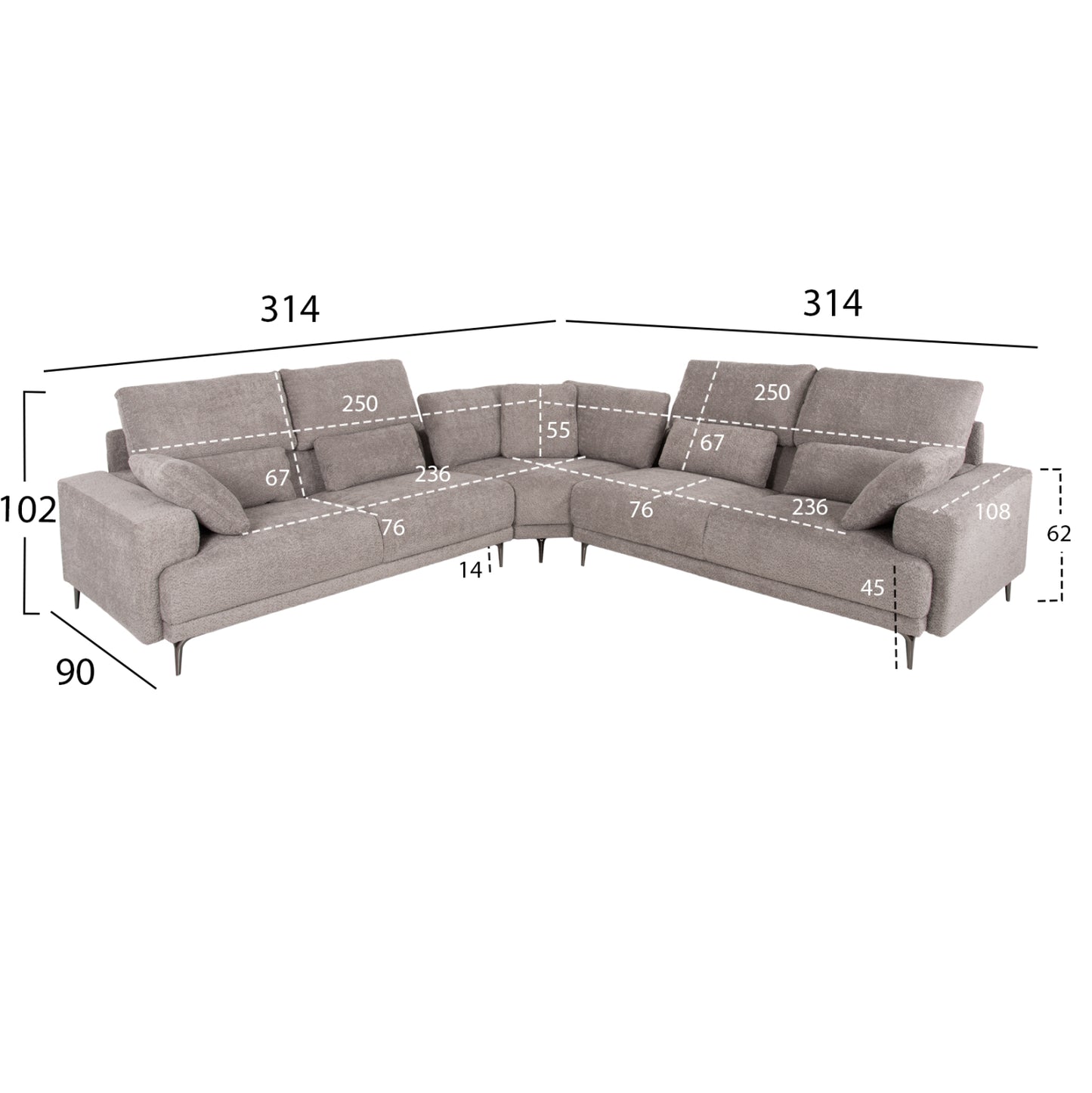 ΚΑΝΑΠΕΣ ΓΩΝΙΑ SYMMET HM3269.01 ΑΝΟΙΧΤΟ ΓΚΡΙ ΥΦΑΣΜΑ-ΑΝΘΡΑΚΙ ΠΟΔΙΑ 314x236x90-102Yεκ.