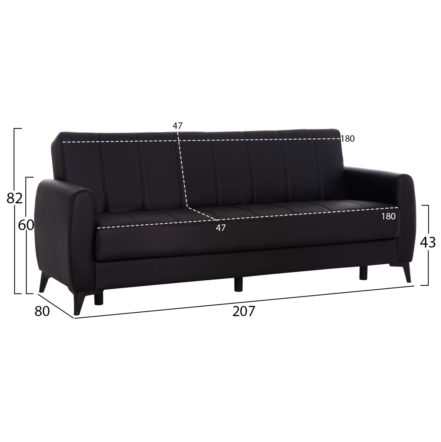 ΚΑΝΑΠΕΣ ΚΡΕΒΑΤΙ ΜΕ ΑΠΟΘ.ΧΩΡΟ TΡΙΘΕΣΙΟΣ NIKKO HM3292.11 ΜΑΥΡΟ PU 207x80x82Υεκ.