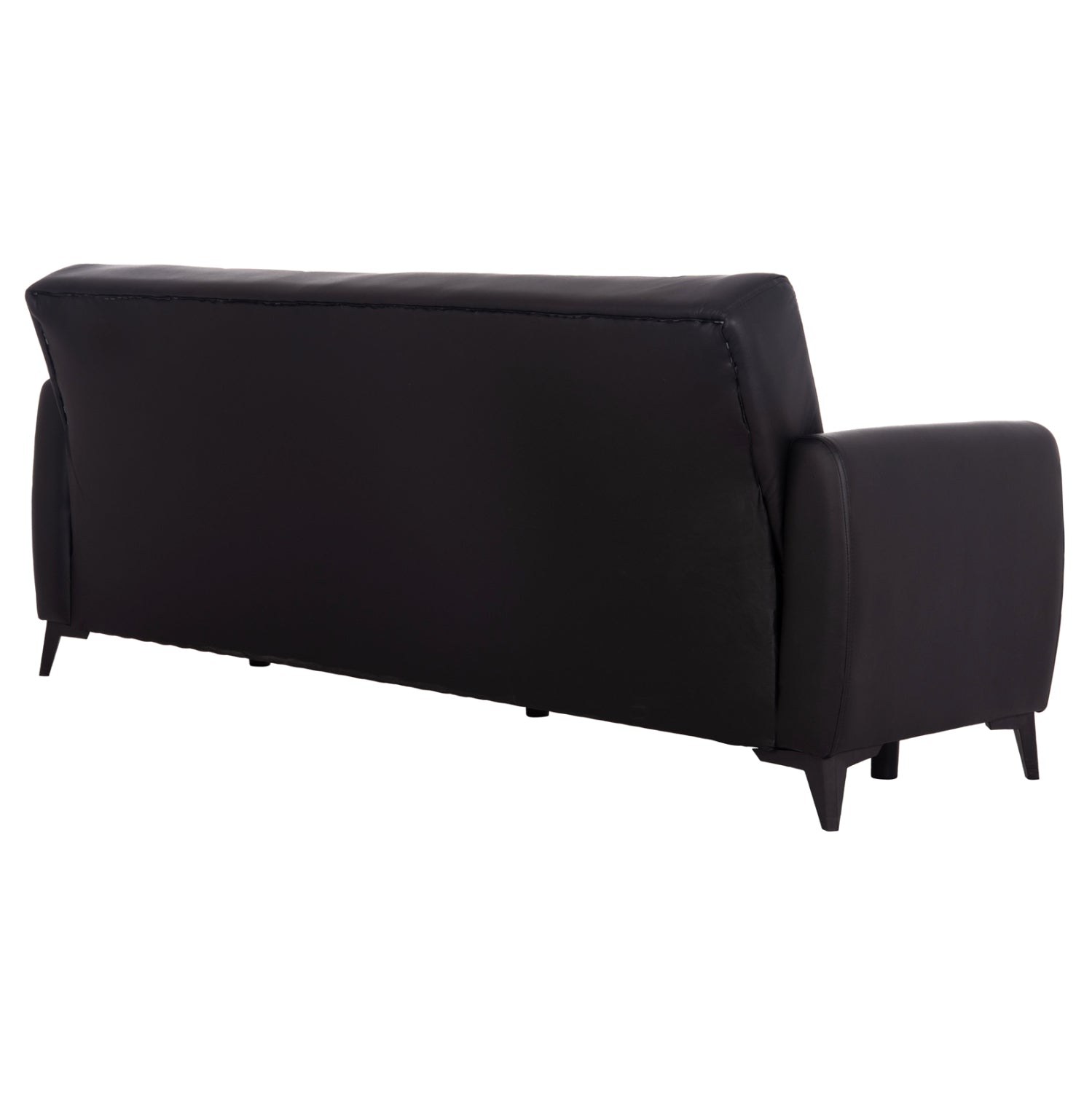 Ο NIKKO είναι ένας όμορφος τριθέσιος καναπές-κρεβάτι. Η επένδυσή του είναι με εξαιρετικής ποιότητας ΜΑΥΡΟ PU δέρμα, ενώ τα μπράτσα είναι φαρδιά τόσο-όσο για να προσφέρουν άνεση και στήριξη.