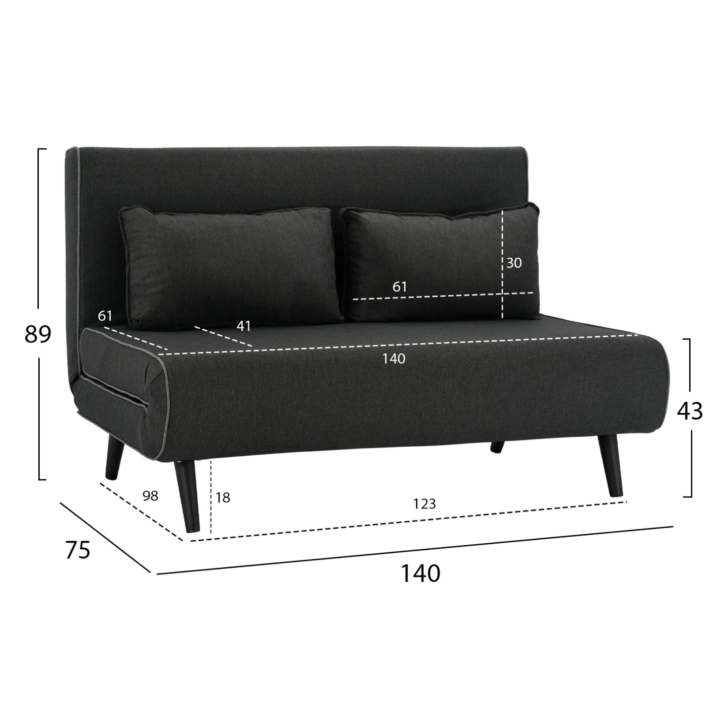 Καναπές κρεβάτι, διθέσιος,επενδεδυμένος με ύφασμα σε σκούρο γκρι απόχρωση 140Χ75Χ89Υ εκ.