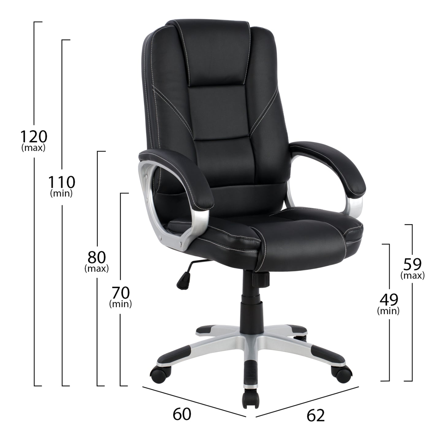 ΚΑΡΕΚΛΑ ΓΡΑΦΕΙΟΥ JAYA ΔΙΕΥΘΥΝΤΙΚΗ HM1091.01 ΜΑΥΡΗ 62x60x120cm