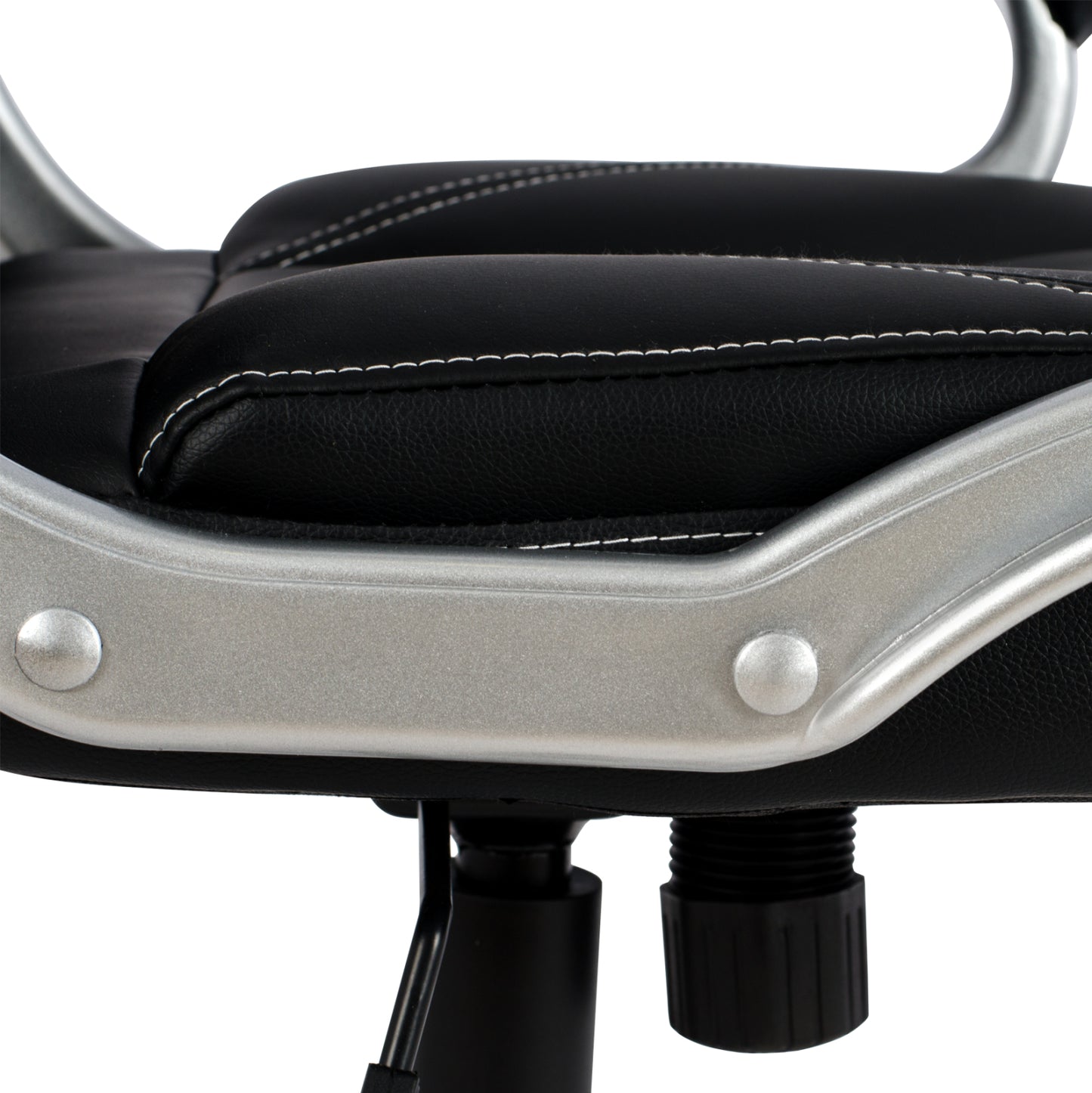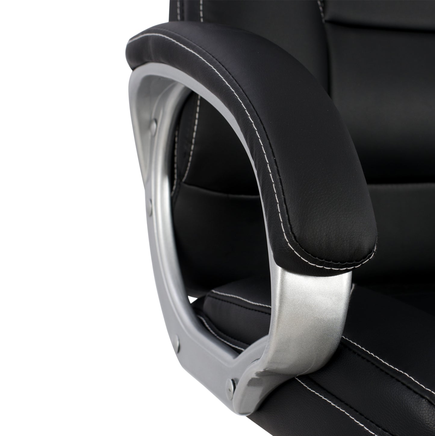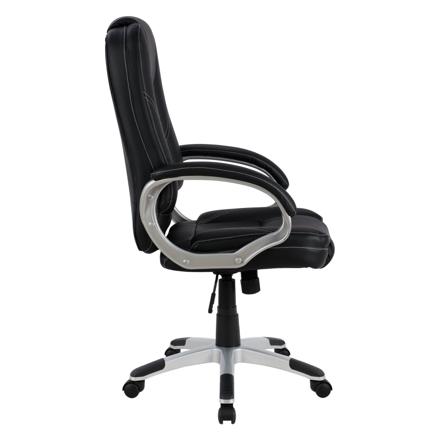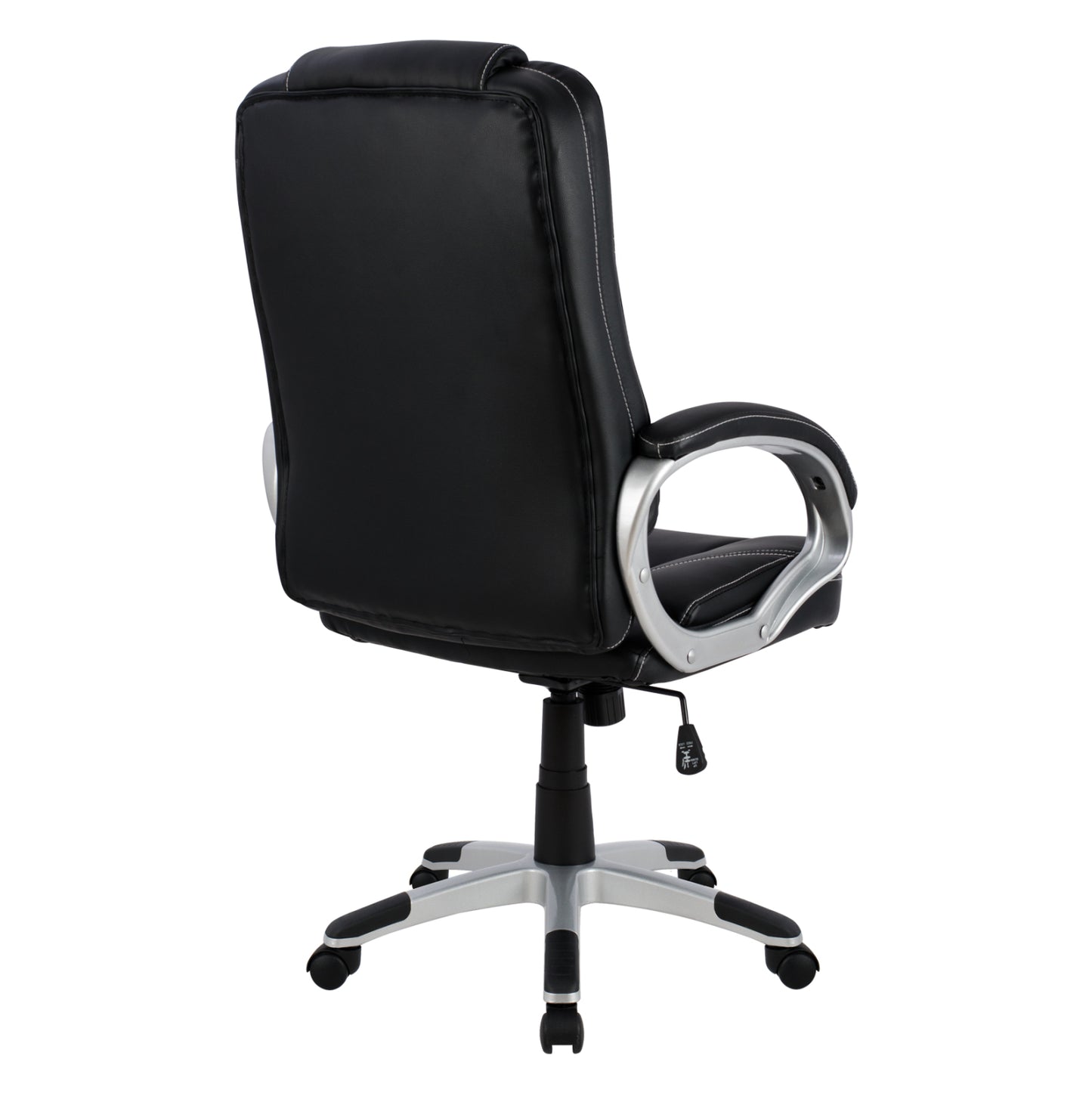 Διευθυντική καρέκλα γραφείου “JAYA” σε μαύρο χρώμα. Μια «πλούσια» καρέκλα γραφείου με ψηλά μπράτσα με κλίση και επενδυμένα με μια λεπτή στρώση αφρολέξ σε PU δέρμα. Η πλάτη είναι ανατομική και ψηλή με πλούσια στρώση από αφρώδη υλικά για άνεση κατά την χρήση και υποστηρίζει ολόκληρο τον κορμό σας, ενώ είναι επενδυμένη με υψηλής ποιότητας PU δέρμα , όπως επίσης και το φαρδύ και αναπαυτικό κάθισμα με την αναπαυτική επιφάνεια. Η βάση είναι ασημί σε σχήμα «αστέρι» με μαύρες λεπτομέρειες στο τελείωμα.
