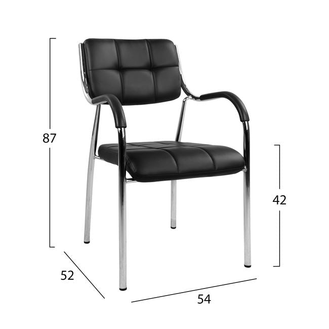 Κάντε τους επισκέπτες σας να αισθανθούν άνετα με την καρέκλα OBERON. Πρόκειται για μια καρέκλα γραφείου συνεργασίας, σε λιτό σχεδιασμό αλλά σίγουρα όμορφο. Είναι χρωμιωμένη ενώ το κάθισμα και η πλάτη είναι ανεξάρτητα μεταξύ τους. Το μπροστά μέρος του καθίσματος έχει μια ελαφριά κλίση για να είναι πιο ευχάριστη και άνετη στην χρήση, ενώ η επένδυσή της είναι σε στυλ τετραγωνισμένου καπιτονέ, τόσο στο κάθισμα, όσο και στην πλάτη. Ο σκελετός της καρέκλας έχει όμορφες καμπύλες ενώ τα μπράτσα έχουν επένδυση πολυκαρβονική για πιο ευχάριστη υφή.