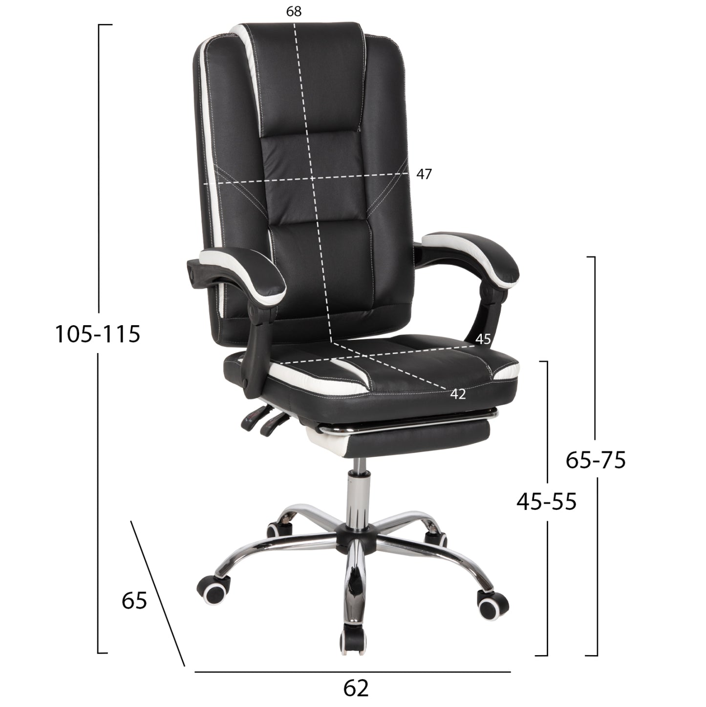 ΚΑΡΕΚΛΑ ΓΡΑΦΕΙΟΥ SEENA HM1190.02 ΜΑΥΡΟ-ΛΕΥΚΟ PU-ΠΤΥΣΣΟΜΕΝΟ ΥΠΟΠΟΔΙΟ 62x65x115Yεκ.