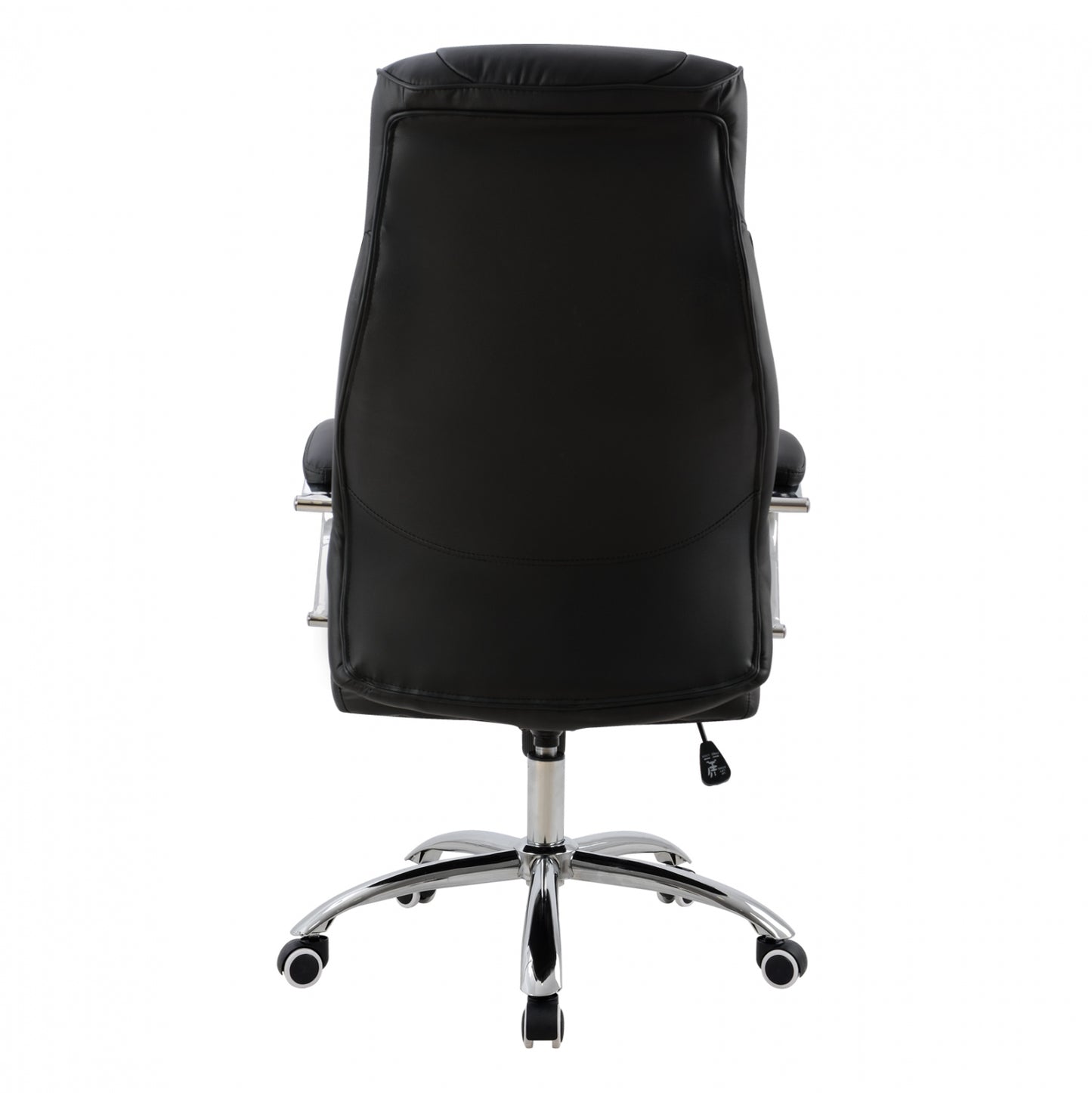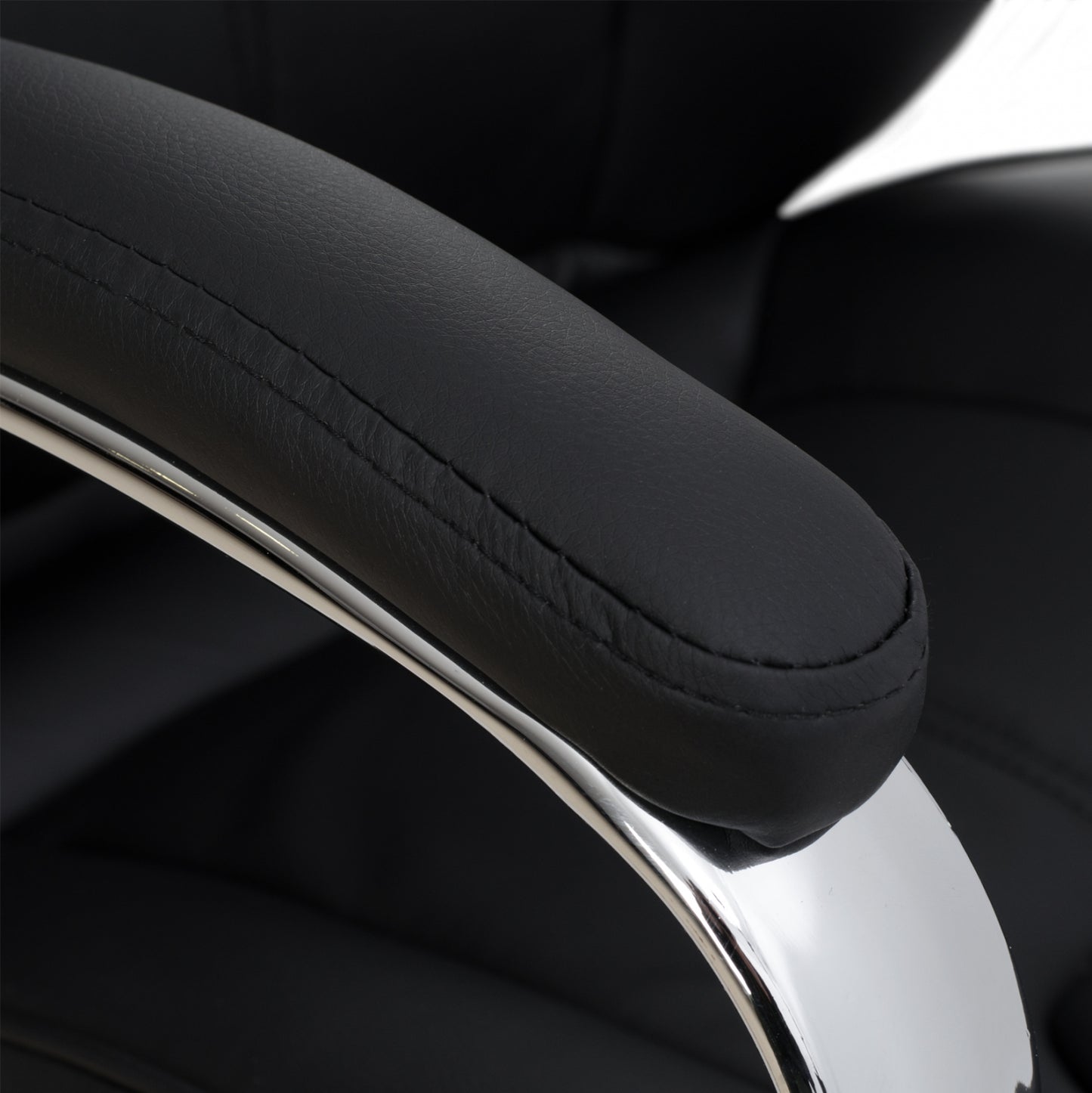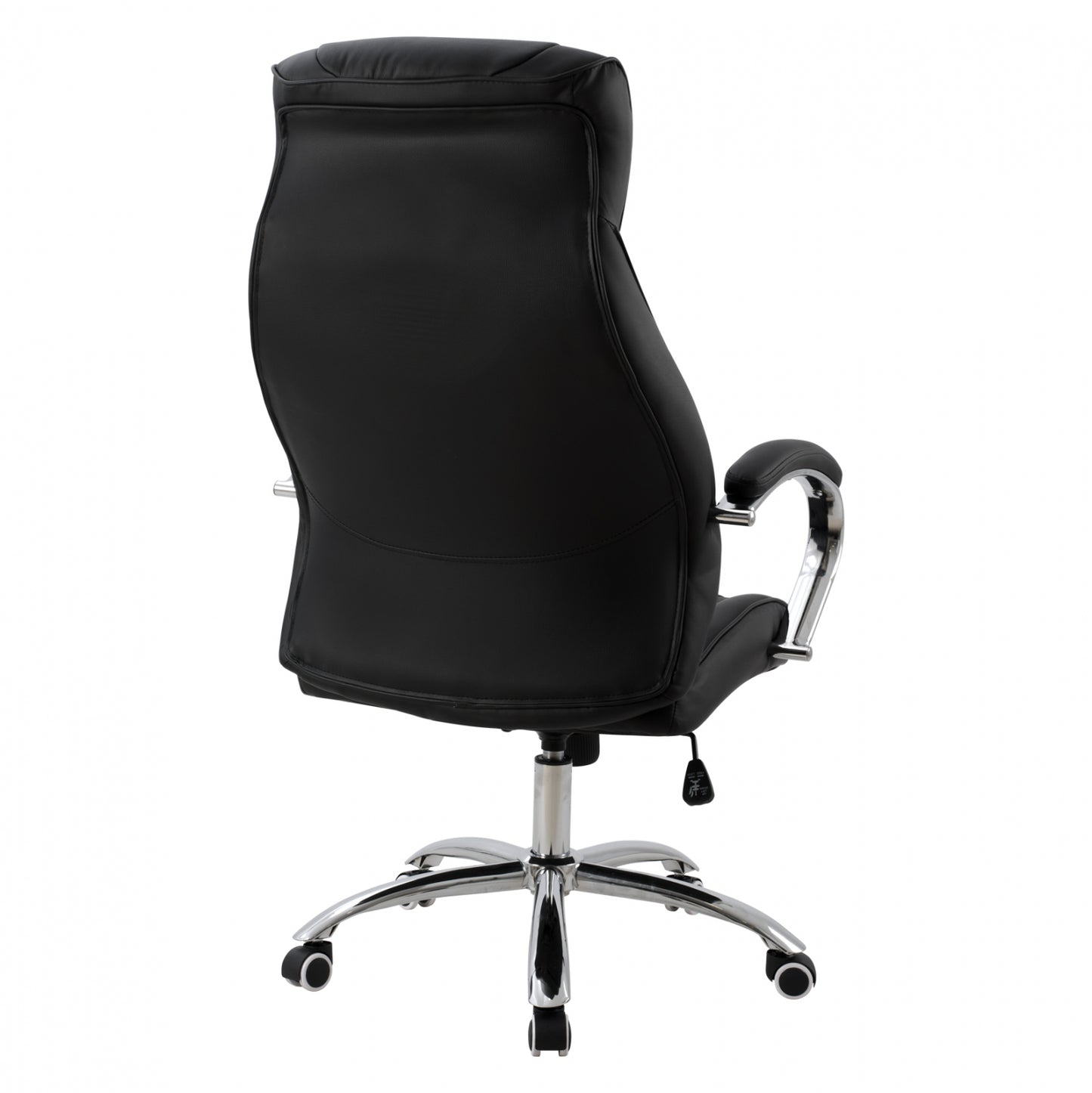 Καρέκλα γραφείου διευθυντική με μπράτσα και ανάκλιση από υψηλής ποιότητας PU σε μαύρο χρώμα και μοναδικό design.