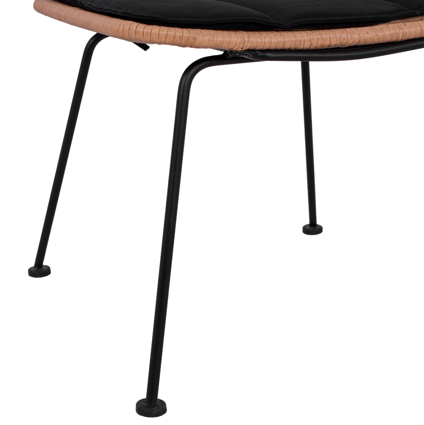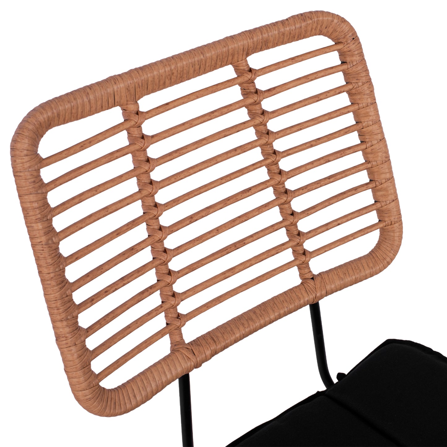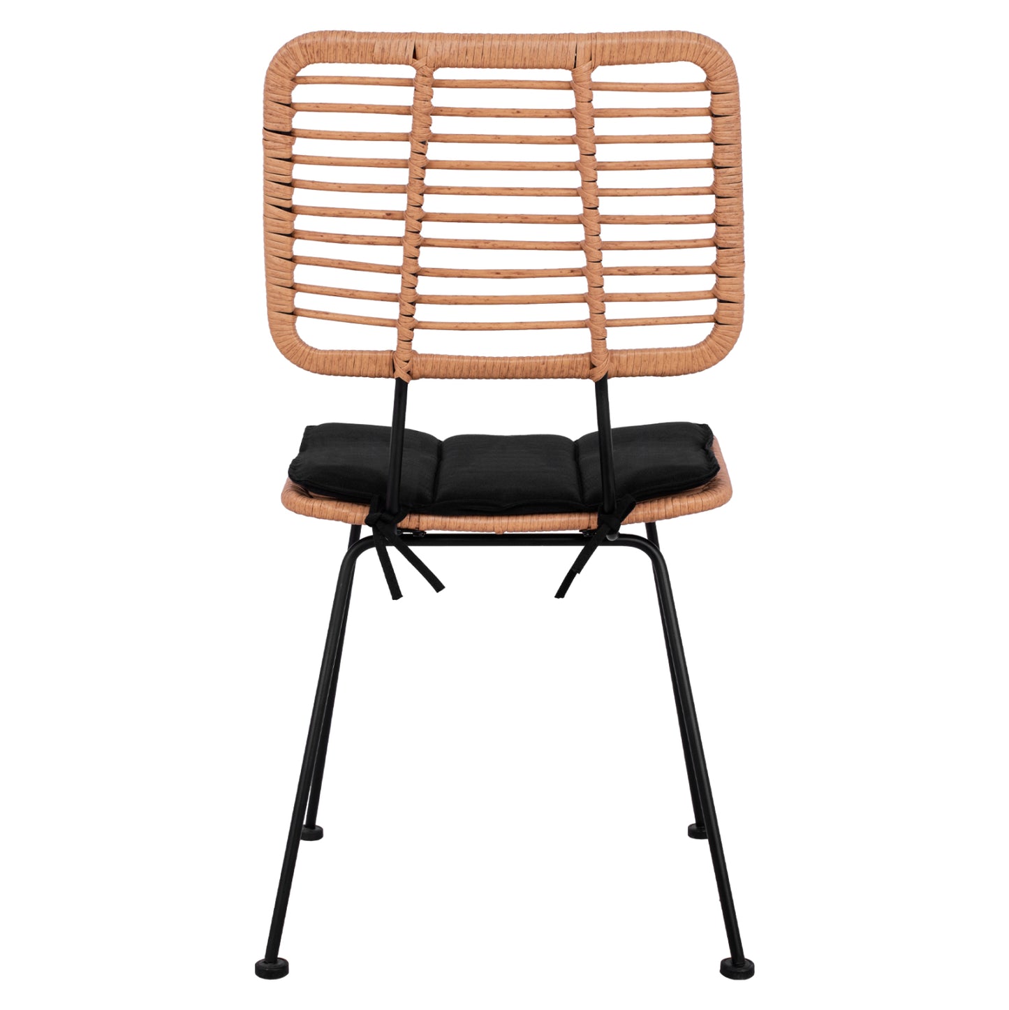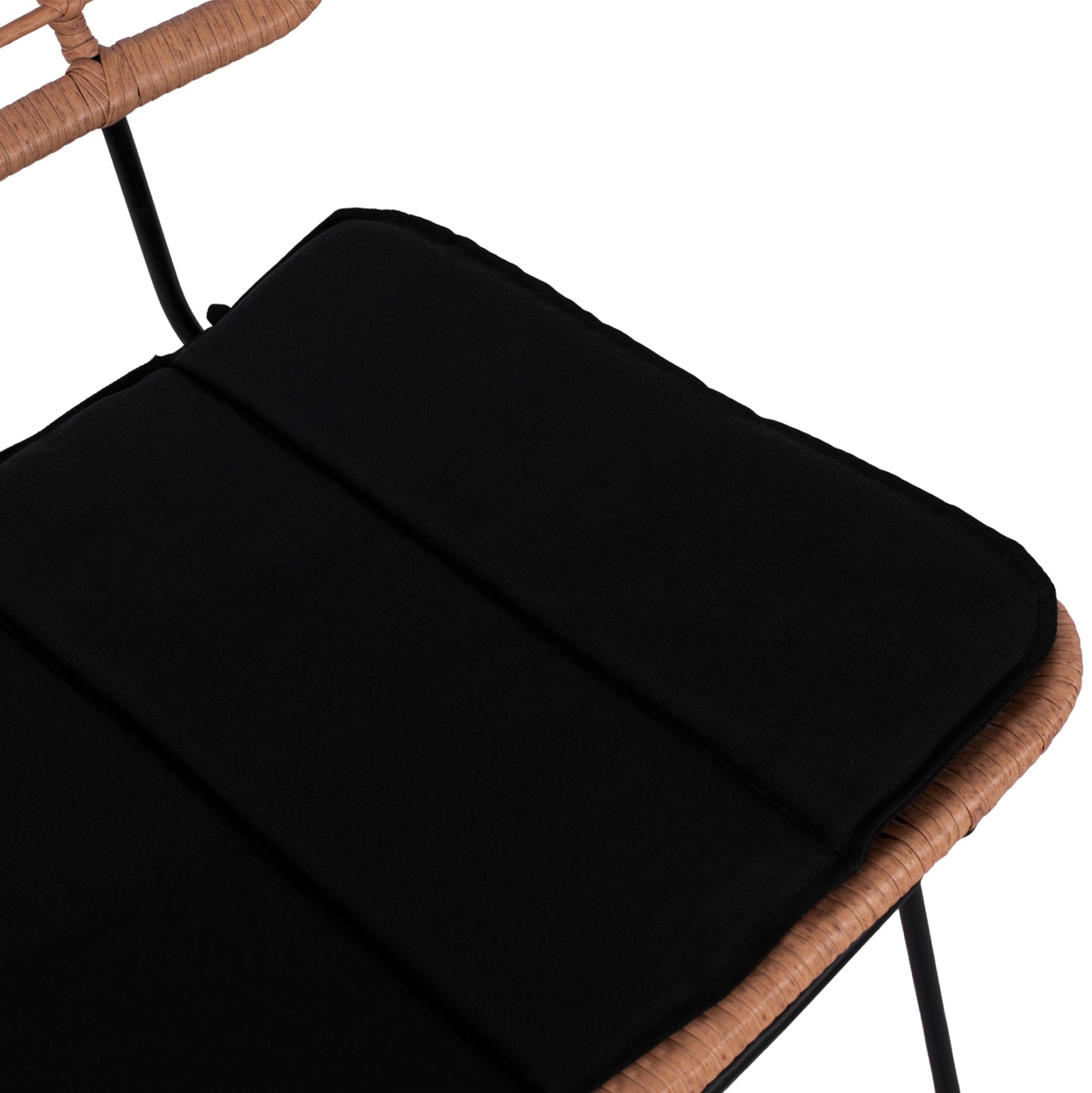 Το κάθισμα της καρέκλας είναι από συνθετικό Rattan σε πλέξη wicker. Στα περισσότερα έπιπλα κήπου και γενικά σε έπιπλα για εξωτερικούς χώρους χρησιμοποιείται συνθετικό Rattan από PVC, δηλαδή τεχνητές ίνες υψηλής ποιότητας. Αυτό δίνει στην κατασκευή εξαιρετική αντοχή και ανθεκτικότητα σε ακραίες συνθήκες ζέστης ή κρύου.