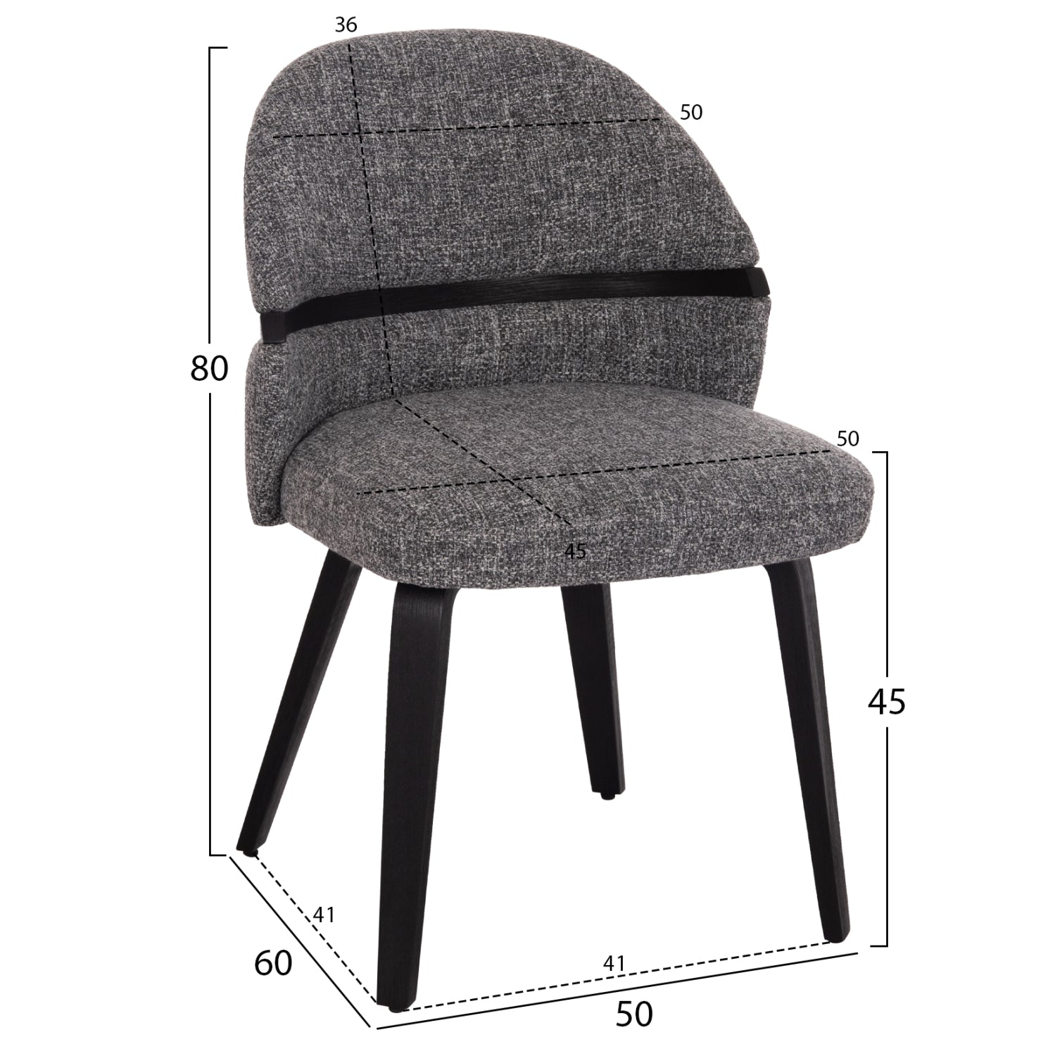 Η καρέκλα τραπεζαρίας DEKKER αποτελεί μια μοναδική πρόταση τόσο για το σπίτι, όσο και για τον επαγγελματικό σας χώρο. Ο σκελετός είναι από plywood σε ΜΑΥΡΟ χρώμα, ενώ το κάθισμα και η πλάτη είναι επενδυμένα με υπέροχο ανάγλυφο ύφασμα σε ΓΚΡΙ χρώμα. Στο κάτω μέρος των ποδιών υπάρχουν ρεγουλατόροι για ρύθμιση της σταθερότητας της καρέκλας.