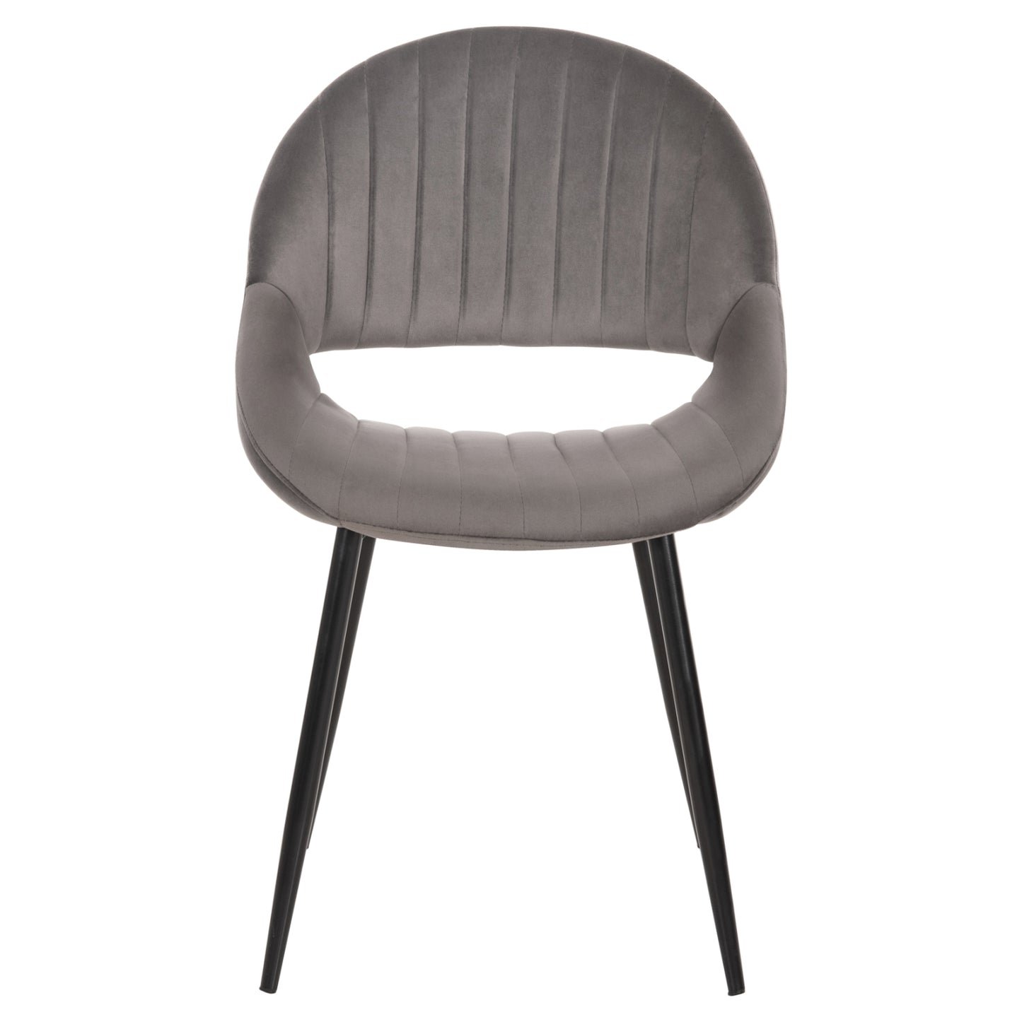 Καρέκλα τραπεζαρίας ODEN με βελούδινη επένδυση σε ΓΚΡΙ χρώμα και ΜΑΥΡΑ μεταλλικά πόδια. Μια καρέκλα με ελκυστικό design που δίνει αέρα πολυτέλειας σε οποιοδήποτε χώρο. Λιτή, ποιοτική και κομψή σίγουρα θα τραβήξει τα βλέμματα. Το εσωτερικό της πλάτης φέρει καπιτονέ τεχνοτροπία στην βελούδινη επένδυση, πράγμα που επιτείνει τον ιδιαίτερο χαρακτήρα αυτής της καρέκλας.