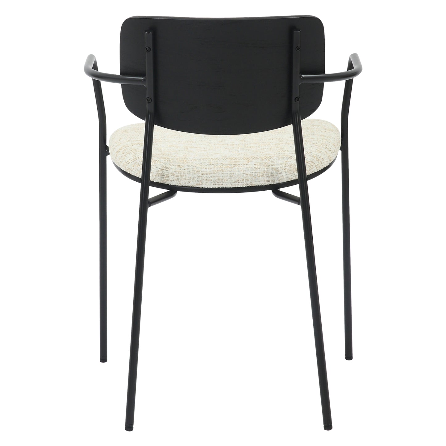 Η καρέκλα τραπεζαρίας VIKKI με τον λιτό σχεδιασμό της ενώνει αρμονικά τον μεταλλικό σκελετό σε ΜΑΥΡΟ χρώμα, με το υψηλής ποιότητας ΕΚΡΟΥ ύφασμα του καθίσματος και την ξύλινη πλάτη σε ΜΑΥΡΟ χρώμα. Συνδυάστε την με ένα ωραίο τραπέζι και δημιουργήστε μια όμορφη και ποιοτική τραπεζαρία.