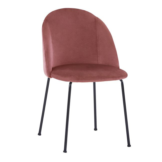 Καρέκλα CLARA επενδυμένη με βελούδο σε απόχρωση σάπιο μήλο και μεταλλικά πόδια σε μαύρο ματ απόχρωση.