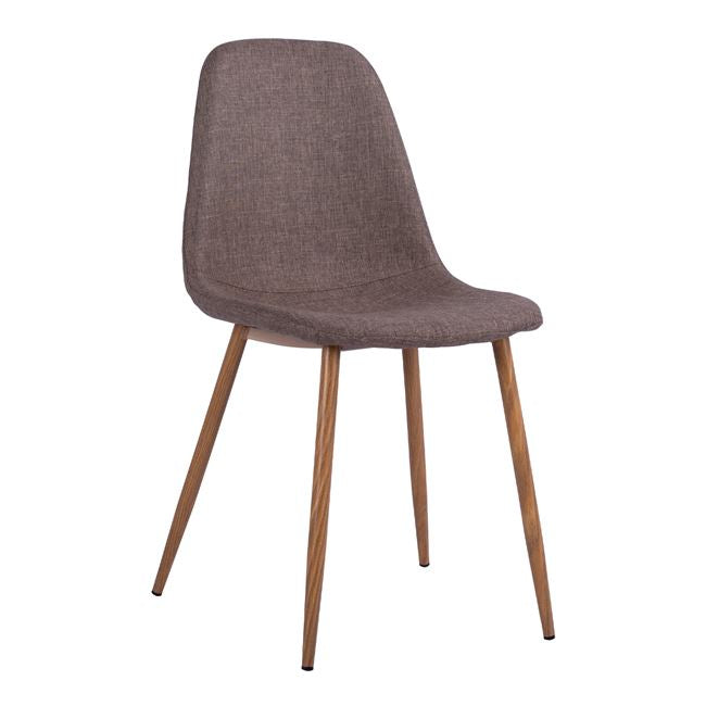 Η κατασκευή της είναι από μέταλλο και ύφασμα ενώ το κάθισμα της καρέκλας είναι επενδυμένο με ύφασμα σε καφέ απόχρωση. Τα πόδια είναι μεταλλικά για μεγαλύτερη αντοχή, βαμμένα στο χρώμα του ξύλου, δίνοντας τους την όψη του φυσικού.