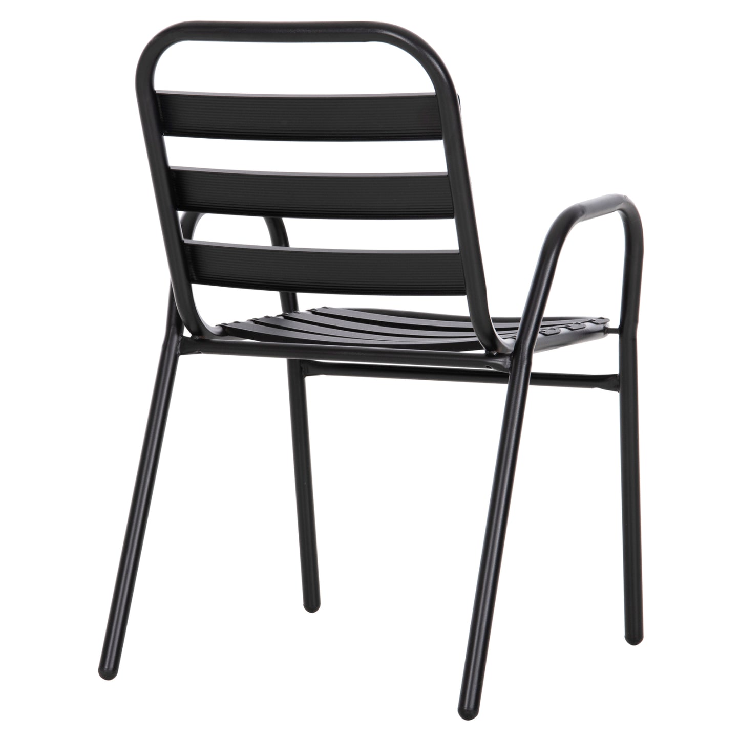 Η καρέκλα εξωτερικού χώρου PRELUDE είναι κατασκευασμένη από μέταλλο και αλουμίνιο σε ΜΑΥΡΟ χρώμα. Ο σκελετός της είναι μεταλλικός, ενώ η πλάτη και το κάθισμα αποτελούνται από «φέτες» αλουμινίου. Σχεδιαστικά, είναι λιτή με όμορφες καμπύλες και χαμηλά μπράτσα, ενώ το γεγονός ότι είναι ελαφριά και ΣΤΟΙΒΑΖΟΜΕΝΗ την κάνει ιδιαιτέρως πρακτική αφού μπορείτε να την αποθηκεύσετε εύκολα στον μικρότερο δυνατό χώρο.