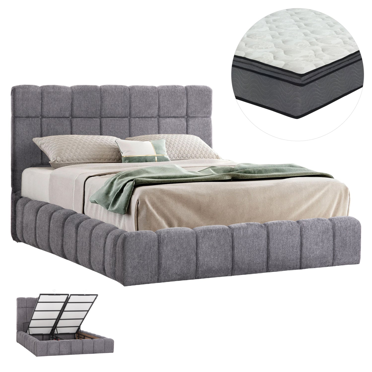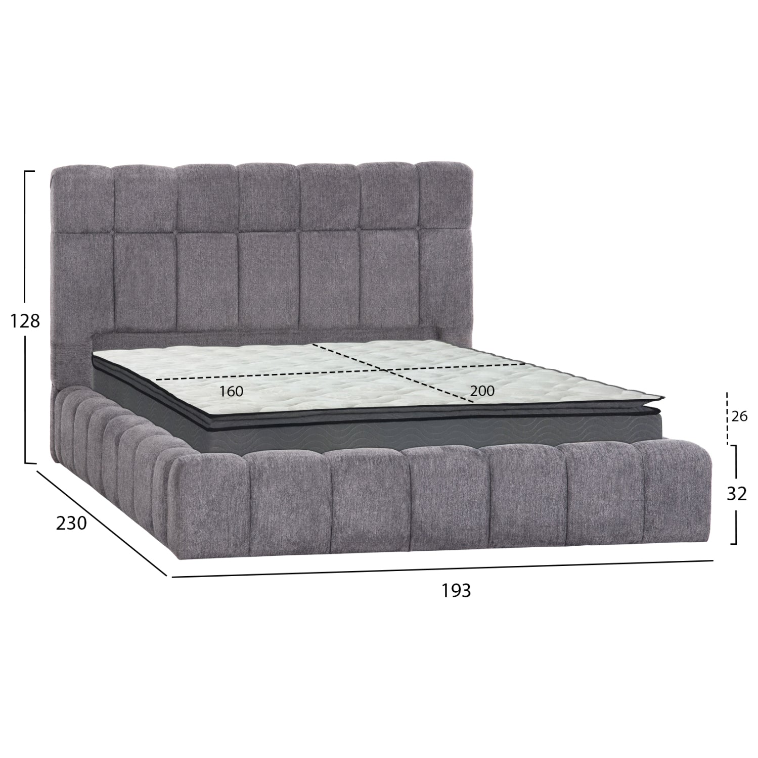 ΚΡΕΒΑΤΙ ΔΙΠΛΟ ΜΕ ΣΤΡΩΜΑ & ΑΠΟΘ.ΧΩΡΟ RAMON HM21168 ΓΚΡΙ ΜΠΟΥΚΛΕ--ΓΙΑ 160x200εκ