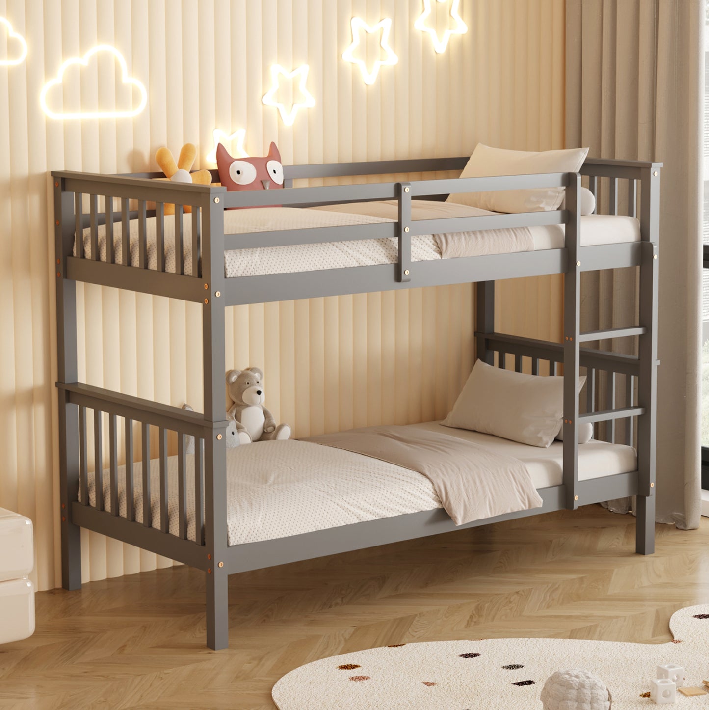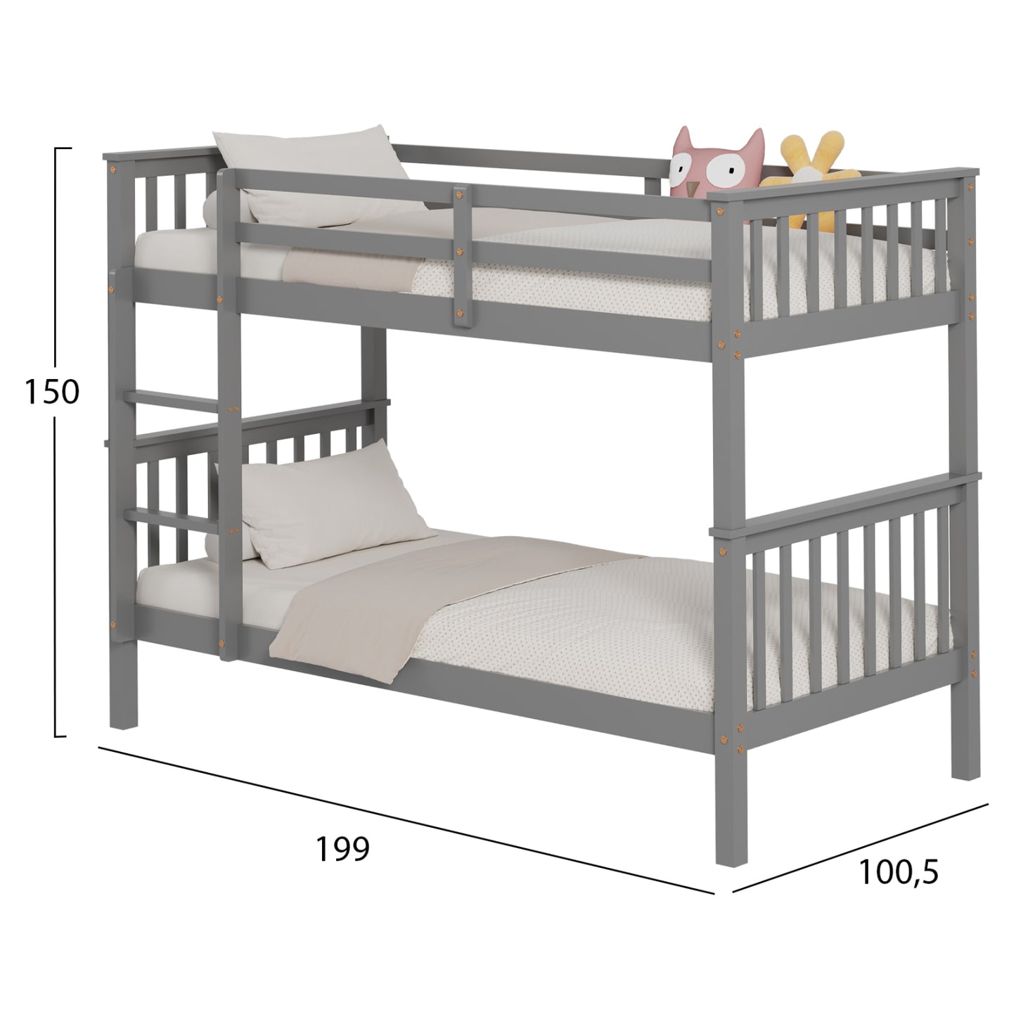 Σας παρουσιάζουμε το «LANTAI» που είναι ένα καινούργιο διώροφο παιδικό κρεβάτι-κουκέτα. Τα κρεβάτια είναι σε διάσταση για μονό στρώμα 90x190 εκ, και αποτελεί μια άριστης ποιότητας, μοντέρνα και ασφαλή επιλογή για το παιδικό δωμάτιο. Η κουκέτα είναι ξύλινη σε ΓΚΡΙ χρώμα βαμμένο με αβλαβές βερνίκι με βάση το νερό και μη τοξικό, ιδανικό για παιδιά. Τα στρώματα τοποθετούνται σε τάβλες κατασκευασμένες από ξυλεία κόντρα πλακέ. Διαθέτει όμορφη σκάλα πρόσβασης στο επάνω κρεβάτι καθώς και κάγκελα προστασίας περιμετρικά στο επάνω κρεβάτι, ενώ τα πόδια είναι σχετικά ψηλά, αφήνοντας χώρο για αποθήκευση πραγμάτων και εύκολο καθάρισμα.
