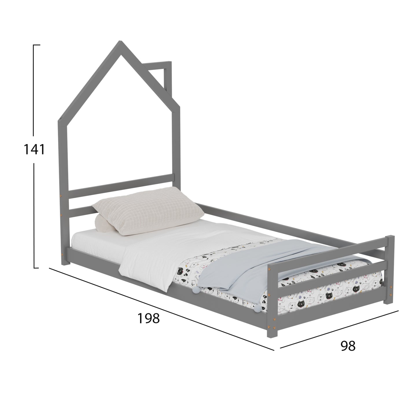 Σας παρουσιάζουμε το καινούργιο παιδικό κρεβάτι HOUSER. Είναι σε διάσταση για μονό στρώμα 90x190 εκ, και αποτελεί μια άριστης ποιότητας, κλασική και ασφαλή επιλογή για το παιδικό δωμάτιο μιας και είναι τύπου Montessori, που σημαίνει ότι έχει σχεδιαστεί σύμφωνα με το εκπαιδευτικό σύστημα Montessori, σύμφωνα με το οποίο τα παιδιά μαθαίνουν καλύτερα, όταν επιλέγουν μόνα τους τι θα κάνουν. Το χαμηλό ύψος κρεβατιού χωρίς πόδια, βοηθά να εξερευνούν την αυτονομία τους και να ανεβοκατεβαίνουν από το κρεβάτι τους ελεύθερα ανά πάσα στιγμή. Είναι ξύλινο σε ΓΚΡΙ χρώμα βαμμένο με αβλαβές βερνίκι με βάση το νερό και μη τοξικό, ιδανικό για παιδιά. Το στρώμα τοποθετείται σε τάβλες κατασκευασμένες από ξυλεία κόντρα πλακέ. Το κεφαλάρι έχει σχήμα σπιτιού με καμινάδα που θα δώσει μια ευχάριστη, «ζεστή», και παιχνιδιάρικη όψη σε κάθε παιδικό δωμάτιο.