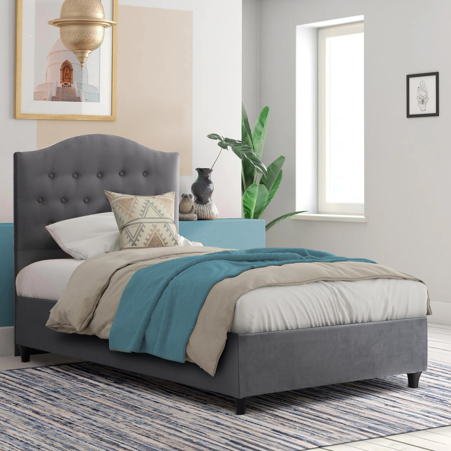 Με το κρεβάτι MALENA δεν θα ζητήσετε ποτέ κάτι άλλο. Το κεφαλάρι είναι ψηλό και επενδυμένο με καπιτονέ τεχνοτροπία με τρούκς, ενώ και όλη η επένδυση του κρεβατιού είναι από βελούδινο ύφασμα. Το ΓΚΡΙ χρώμα σε όλο το κρεβάτι είναι ουδέτερο και μπορεί να συνδυαστεί με πληθώρα διακοσμητικών μοτίβων. Όμως, το κύριο χαρακτηριστικό αυτού του κρεβατιού είναι ότι δεν ακολουθεί την κλασική κατασκευή με τις τάβλες του σομιέ για την στήριξη του στρώματος, αλλά αντίθετα αποτελείται από μια συνεχόμενη επιφάνεια (2 μοριοσανίδες) επενδυμένη με αντιολισθητική φόδρα, πάνω στην οποία τοποθετείται το στρώμα. Σε διαστάσεις μονού στρώματος 90x200 εκ. ένα άτομο θα χωρέσει άνετα!