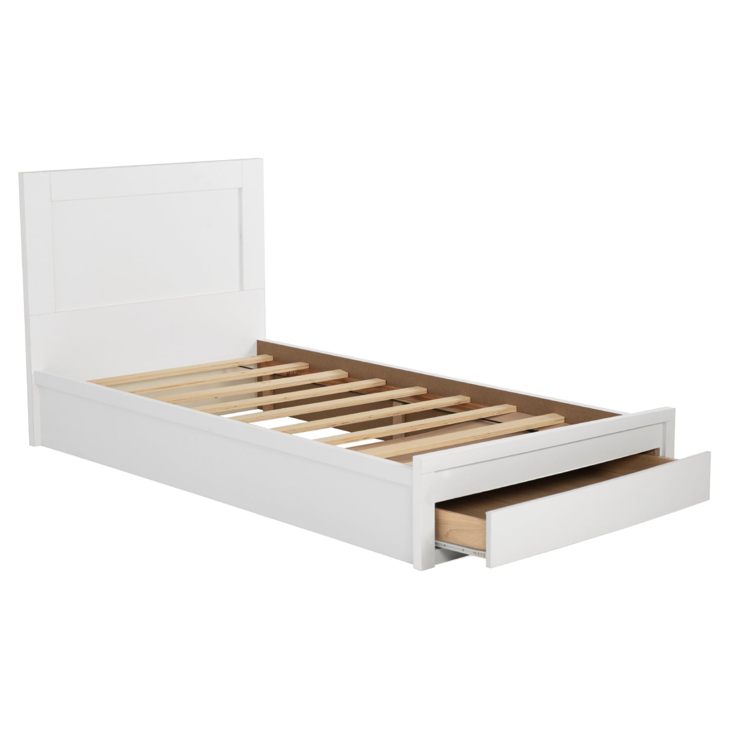 Το κρεβάτι MELANY σε διάσταση για ημίδιπλο στρώμα 110x190 εκ, είναι μια άριστης ποιότητας, κλασική και ασφαλής επιλογή που θα ταιριάξει σε κάθε υπνοδωμάτιο. Το χαρακτηριστικό του είναι ότι πατάει απευθείας στο δάπεδο και εκμεταλλεύεται τον χώρο κάτω από τις τάβλες του σομιέ με 1 μεγάλο συρτάρι που βγαίνει από την πλευρά του «ποδαρικού» (η επιφάνεια απέναντι από το κεφαλάρι). Όλες οι γωνίες είναι τετραγωνισμένες χωρίς καμία καμπύλη, ενώ o ΛΕΥΚΟΣ χρωματισμός είναι ευχάριστος και ουδέτερος, και μπορεί να συνδυαστεί με πληθώρα διακοσμητικών μοτίβων στον χώρο σας.
