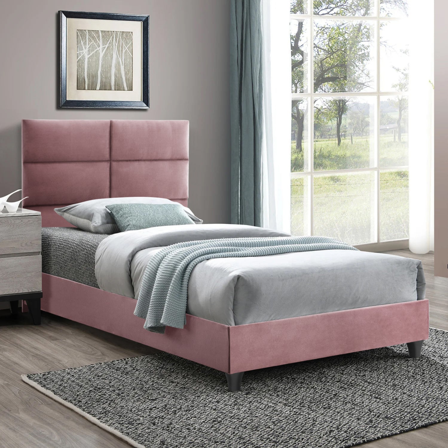 Το κεφαλάρι είναι ψηλό και επενδυμένο με καπιτονέ τεχνοτροπία σε μεγάλα ορθογώνια, ενώ και όλη η επένδυση του κρεβατιού είναι από βελούδινο ύφασμα. Το ΣΑΠΙΟ ΜΗΛΟ χρώμα σε όλο το κρεβάτι είναι εντυπωσιακό και μπορεί να συνδυαστεί με πληθώρα διακοσμητικών μοτίβων.
