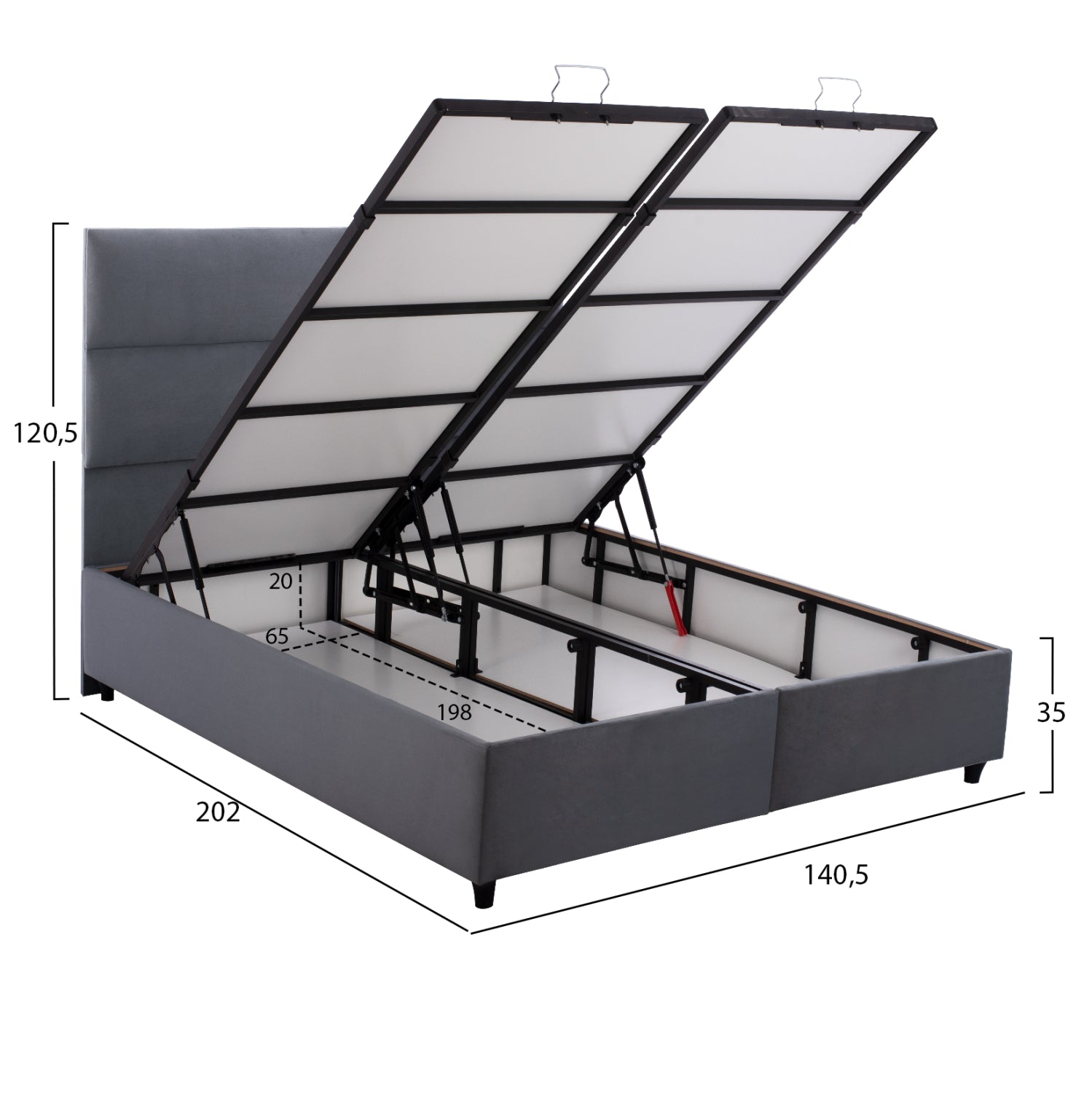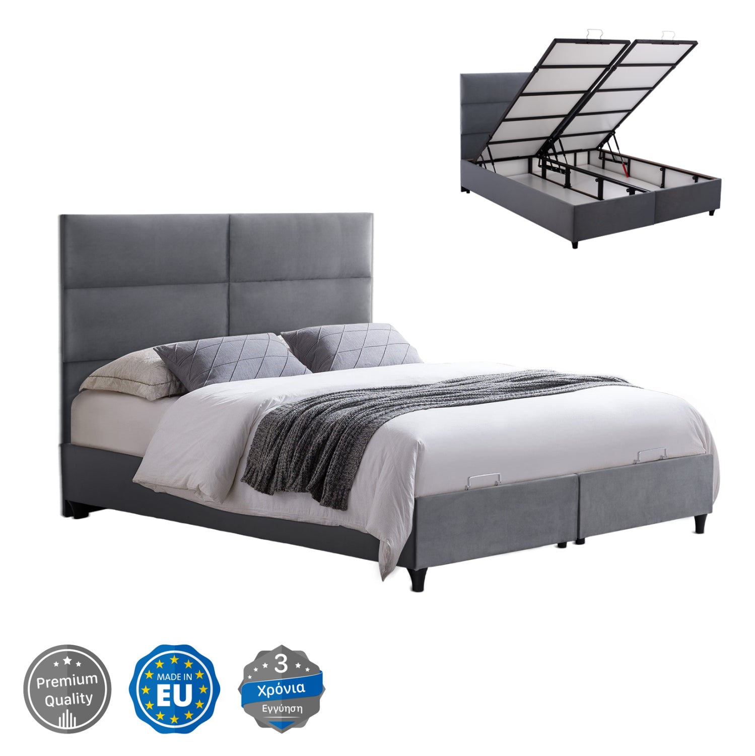 ΚΡΕΒΑΤΙ MILO ΜΕ ΑΠΟΘ.ΧΩΡΟ HM738.10 ΓΚΡΙ ΒΕΛΟΥΔΟ-- ΓΙΑ ΣΤΡΩΜΑ 140x200εκ