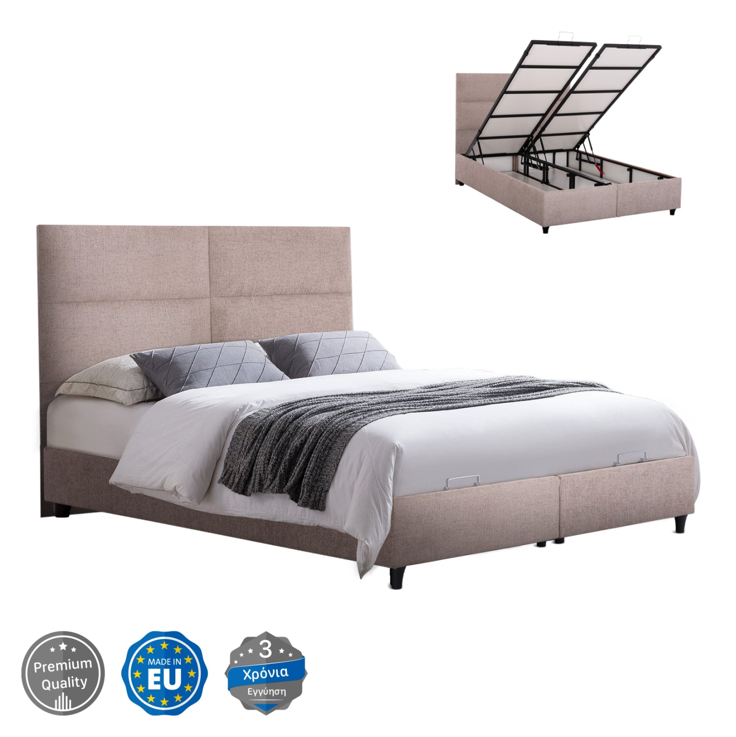 ΚΡΕΒΑΤΙ MILO ΜΕ ΑΠΟΘ.ΧΩΡΟ HM738.22 ΜΠΕΖ ΜΠΟΥΚΛΕ ΥΦΑΣΜΑ ΓΙΑ ΣΤΡΩΜΑ 140x200εκ