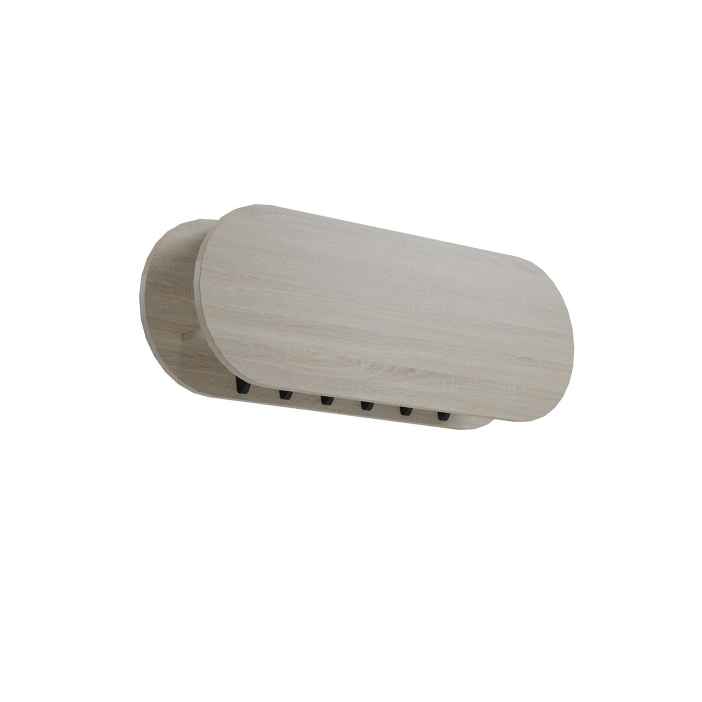 Η επιτοίχια κρεμάστρα εισόδου μελαμίνης STOR σε ΣΟΝΑΜΑ χρώμα είναι μια πρακτική πρόταση διακόσμησης για τον χώρο υποδοχής του σπιτιού σας, που θα σας βοηθήσει να δημιουργήσετε έναν καλά οργανωμένο και τακτοποιημένο χώρο. Έχει σχήμα οβάλ και διαθέτει 6 μονές κρεμάστρες (γαντζάκια) και 1 ορθογώνιο χώρο τοποθέτησης αντικειμένων/ράφι, το οποίο όμως κλείνει, αφού η εμπρός επιφάνεια αποτελεί την πόρτα του ραφιού. Αυτή η πόρτα ανοίγει προς τα επάνω και «κρύβει» εκτός από το ράφι, και τις κρεμάστρες.