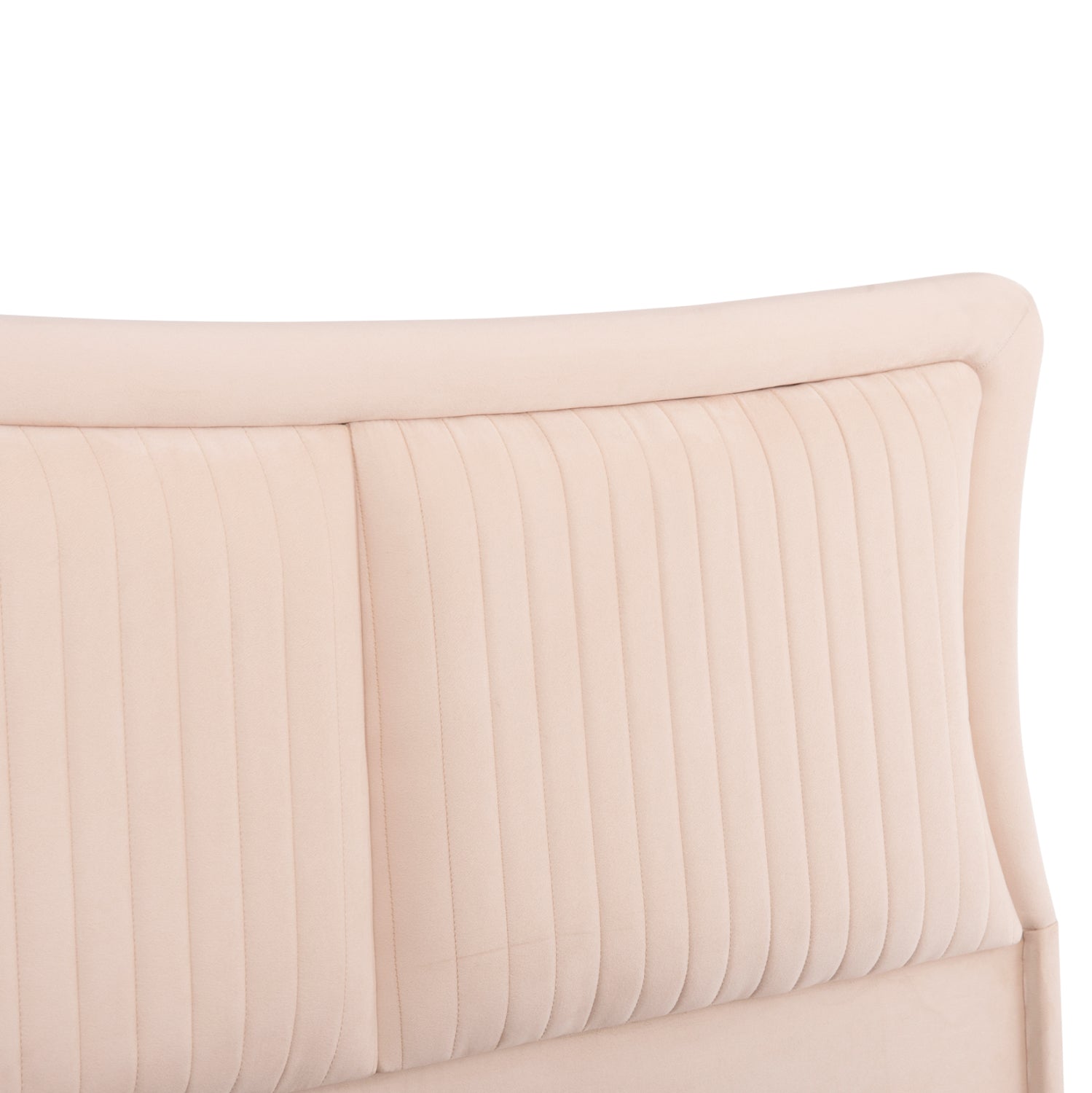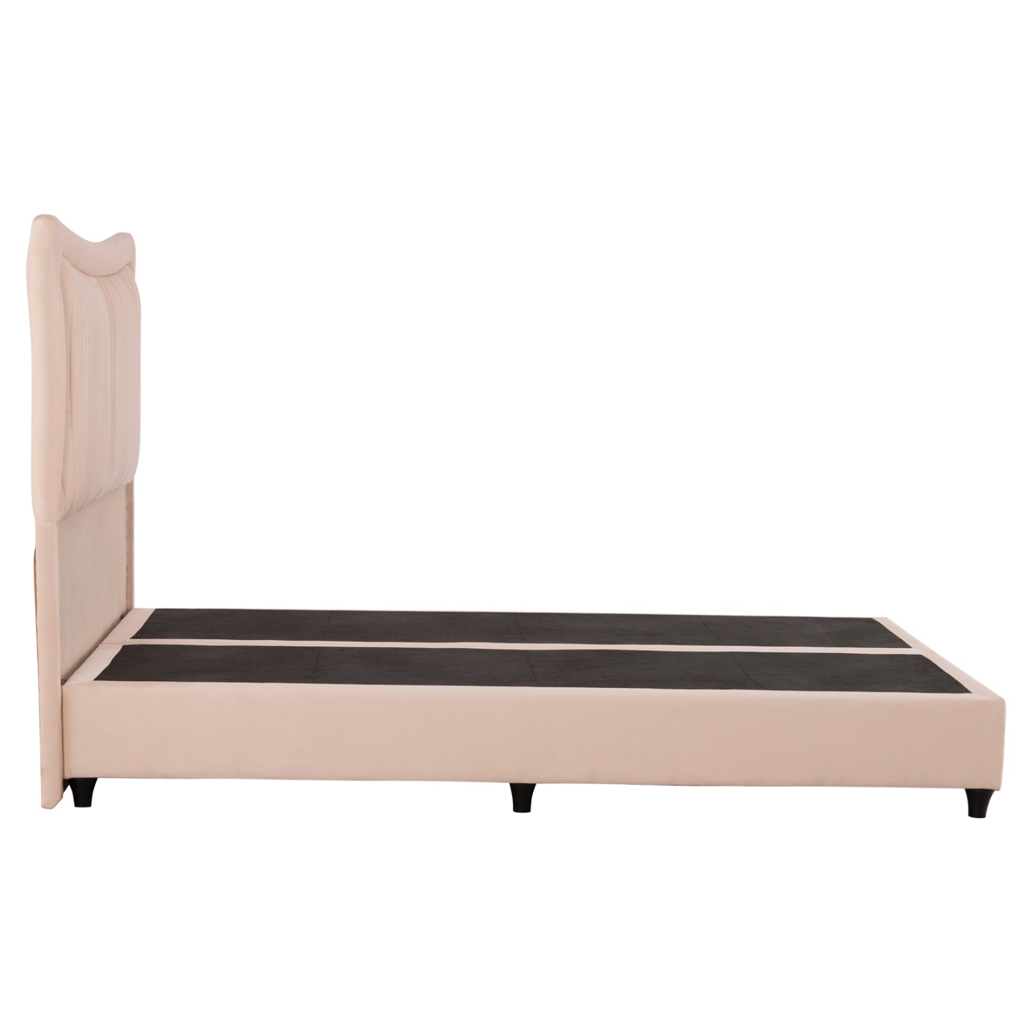 Η επένδυση έχει γίνει εξολοκλήρου από βελούδινο ύφασμα, χαρίζοντας ελκυστική όψη και μια εκλεπτυσμένη γοητεία στην διακόσμηση του υπνοδωματίου. Το βελούδο είναι ένα ύφασμα απαλό, χαλαρό, απολαυστικό και φινετσάτο.