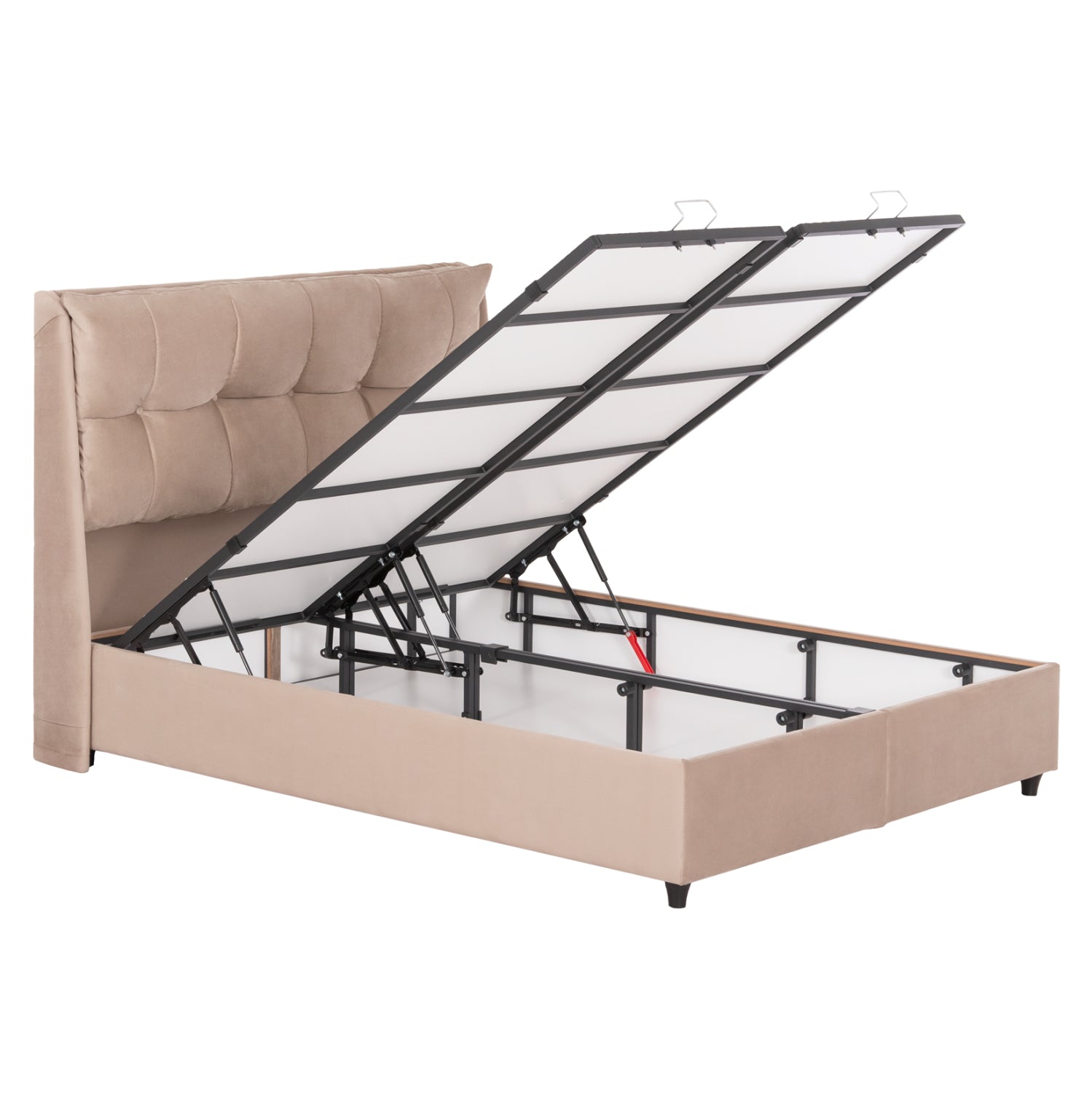 ΚΡEΒΑΤΙ ΜΕ ΑΠΟΘΗΚΕΥΤΙΚΟ ΧΩΡΟ DREAMLET HM716 ΜΠΕΖ ΒΕΛΟΥΔΟ- ΓΙΑ ΣΤΡΩΜΑ 160x200εκ.