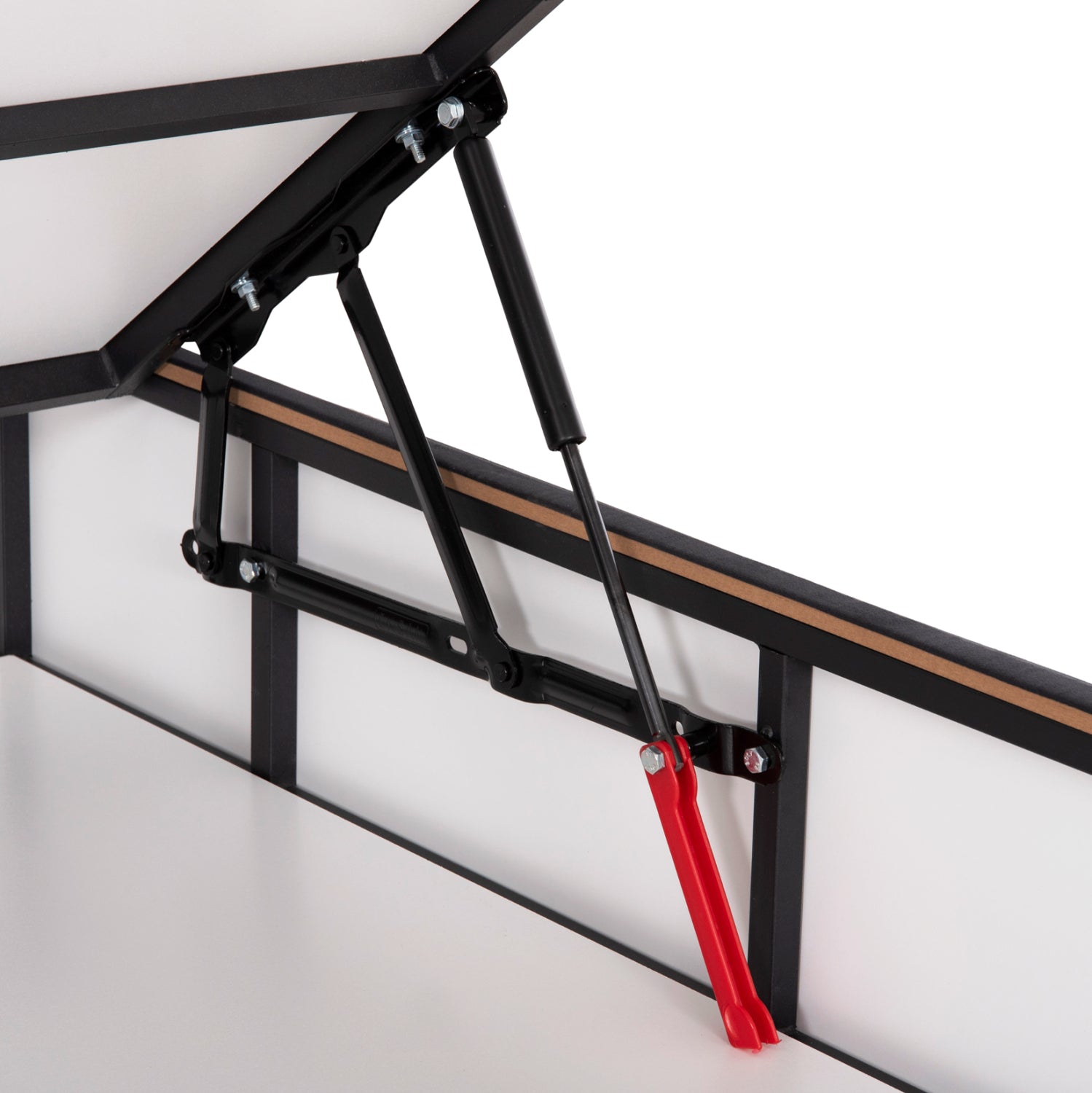 Ο σκελετός του κρεβατιού είναι ξύλινος, πράγμα που καθιστά το κρεβάτι εξαιρετικά στιβαρό και ανθεκτικό, χάρη και στην ενισχυμένη κατασκευή του. Ο μηχανισμός αποθήκευσης είναι μεταλλικός για αντοχή στο βάρος και στον χρόνο.