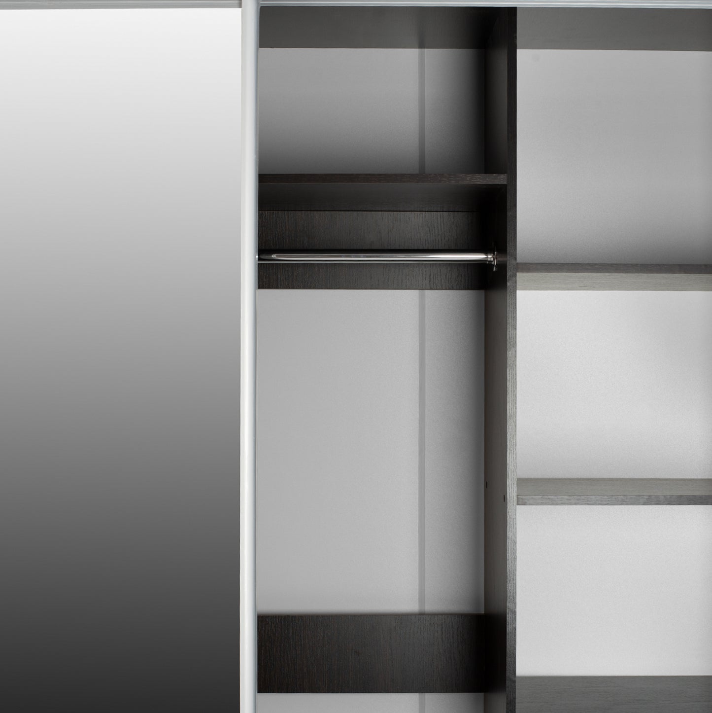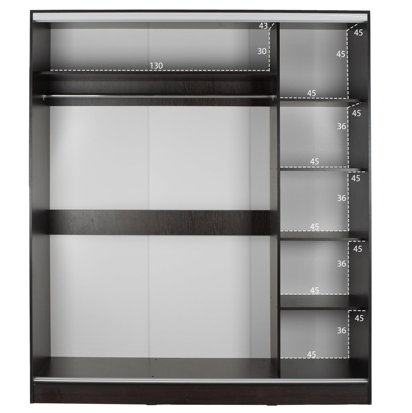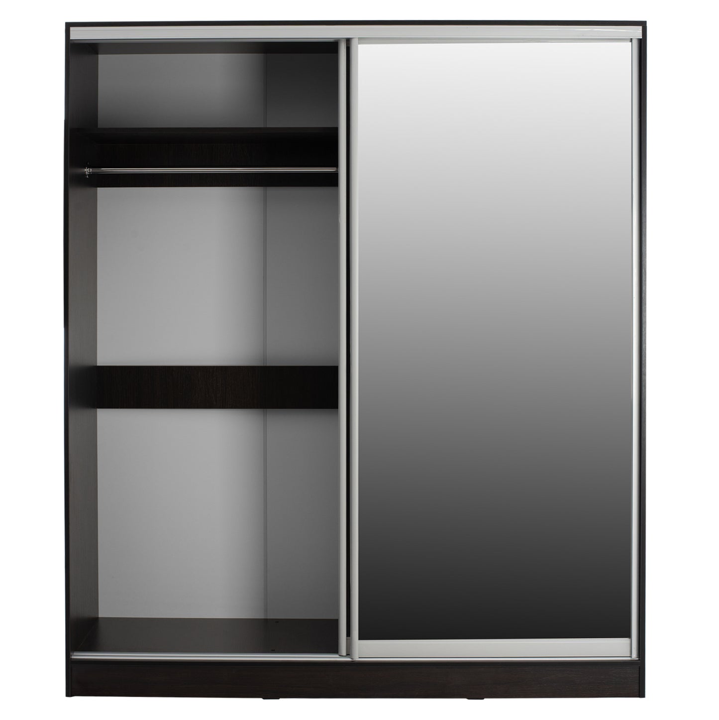 ΗΜ2434.02-Ντουλάπα---Γνωρίστε την δίφυλλη ντουλάπα ADLER. Πρόκειται για μια πρακτικότατη ντουλάπα που έχει φτιαχτεί με γνώμονα την όσο το δυνατόν καλύτερη εκμετάλλευση του χώρου. Οι πόρτες είναι συρόμενες, ενώ η μία από αυτές είναι ολόκληρη εξοπλισμένη με καθρέπτη, για να μην χρειαστείτε ξεχωριστό έπιπλο που θα καταλάμβανε επιπλέον χώρο. Το εσωτερικό της ντουλάπας χωρίζεται σε 2 μέρη. Η μία πλευρά διαθέτει παταράκι και κάτω από το παταράκι μια ράγα για κρεμάστρες. Η άλλη πλευρά έχει ράφια. Η ντουλάπα αυτή έχει χρώμα WENGE και θα ταιριάξει σε κάθε σπίτι.