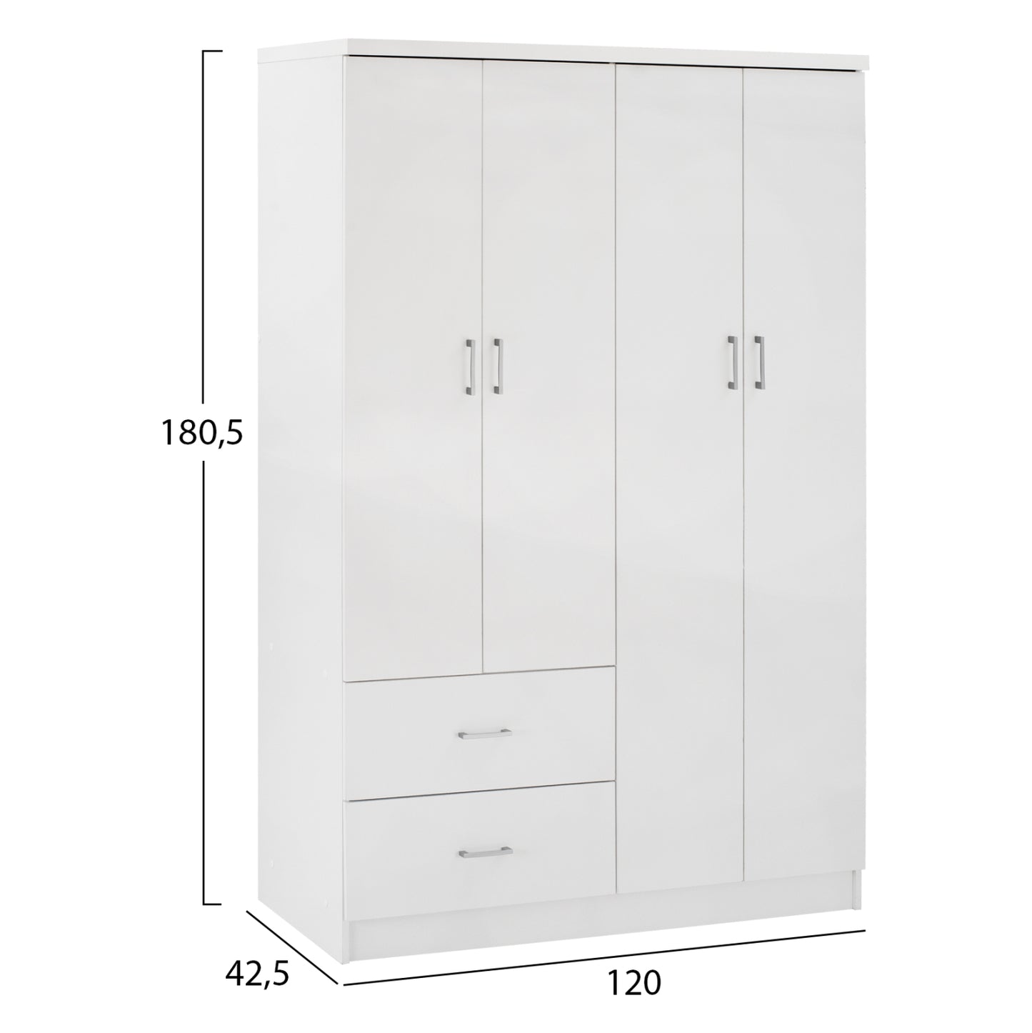 Ντουλάπα μελαμίνης τετράφυλλη σε λευκή απόχρωση.