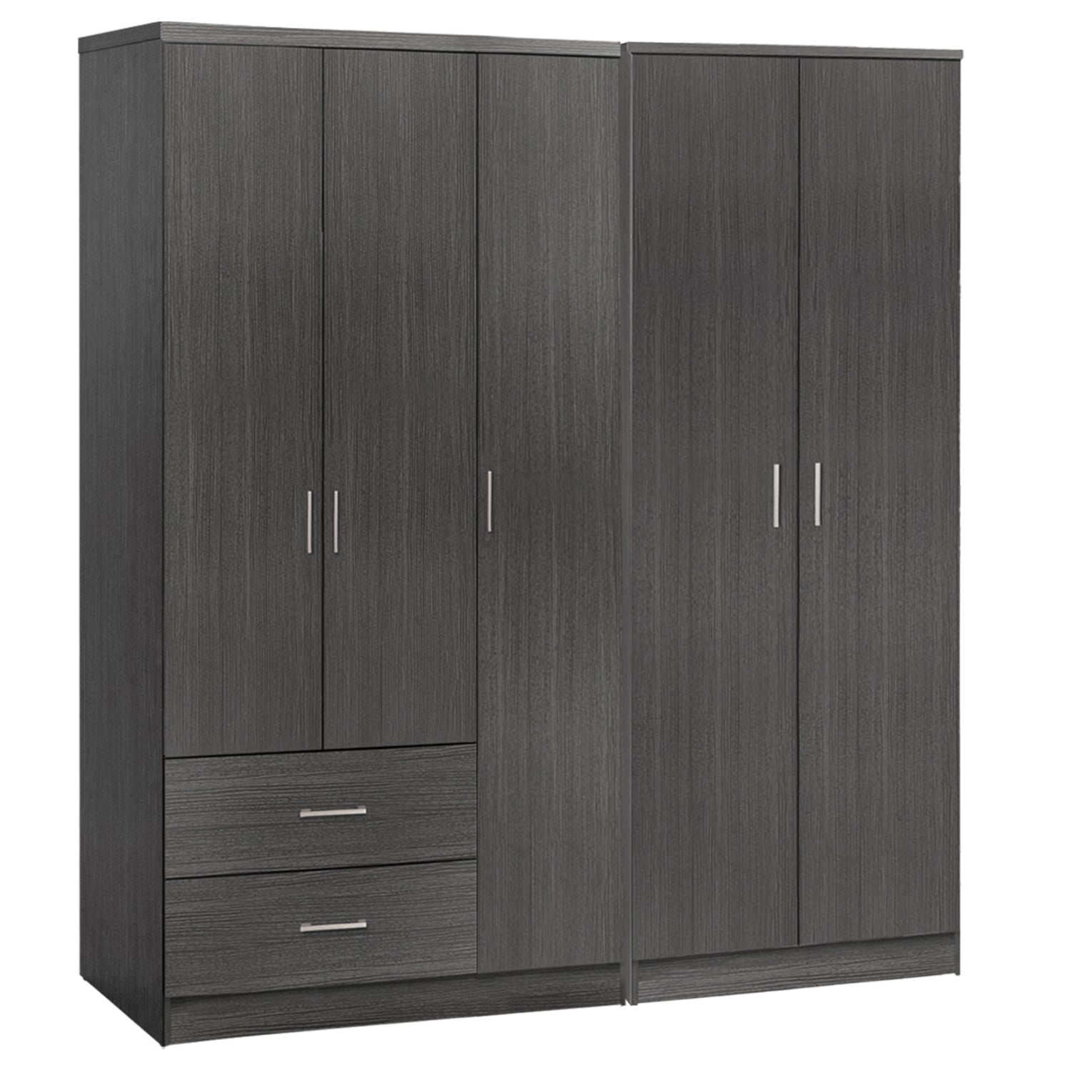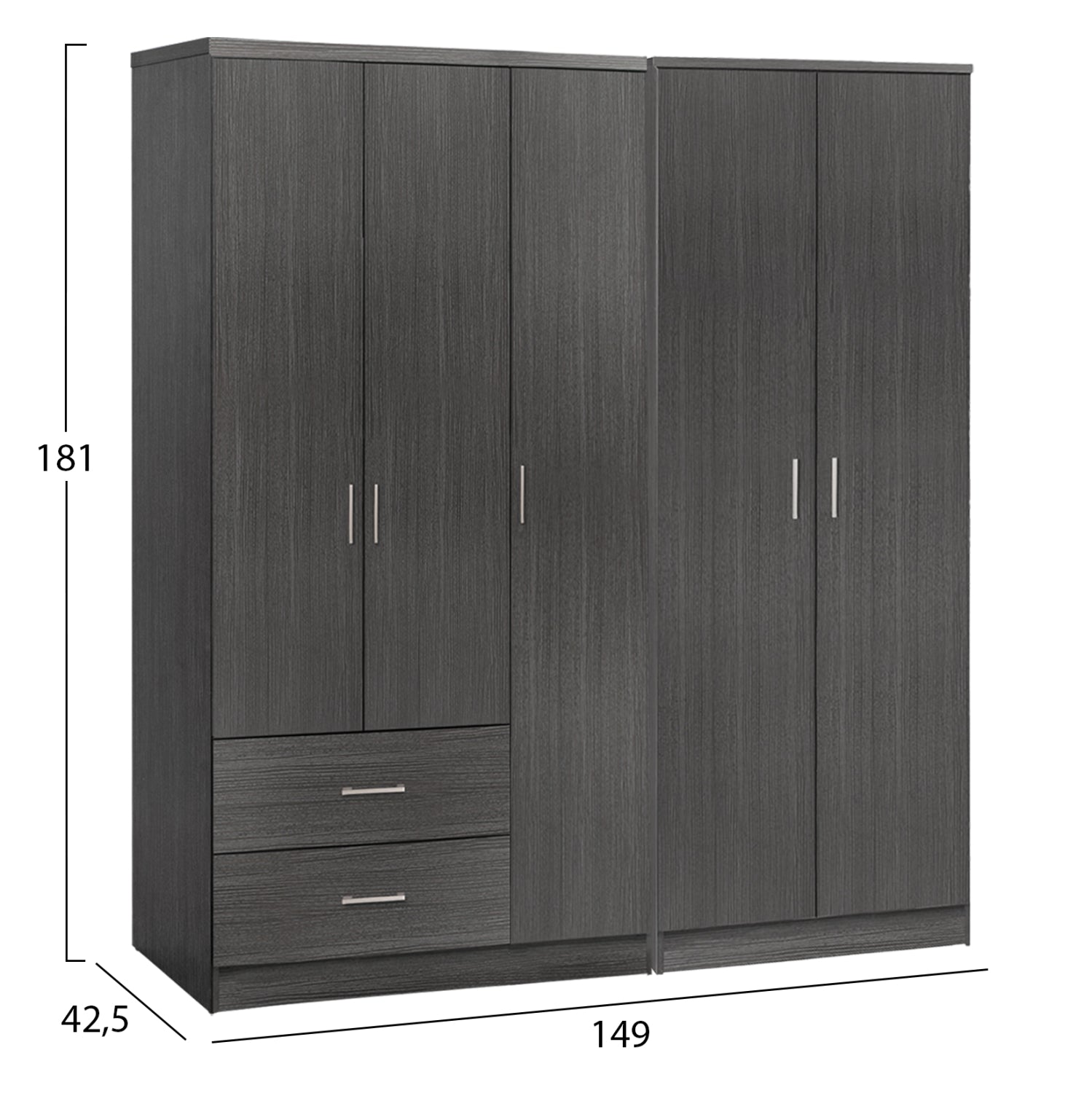 Ντουλάπα μελαμίνης 5-φυλλη σε χρώμα Zebrano, που αποτελείται από μία τρίφυλλη και μία δίφυλλη ντουλάπα.