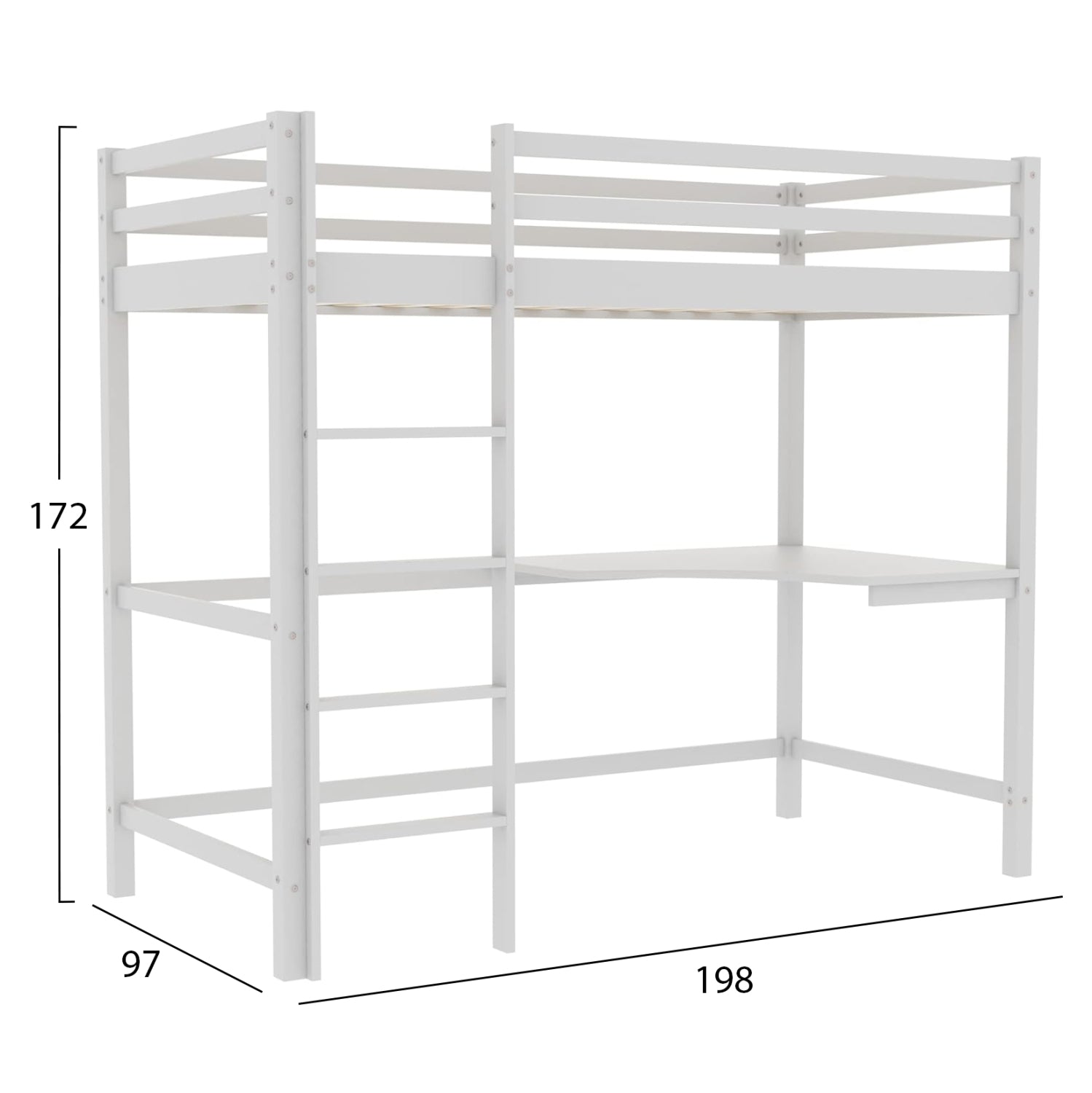 Σας παρουσιάζουμε το καινούργιο παιδικό κρεβάτι-κουκέτα AKRON σε διάσταση για μονό στρώμα 90x190 εκ, και αποτελεί μια άριστης ποιότητας, μοντέρνα και ασφαλή επιλογή για το παιδικό δωμάτιο. Είναι ξύλινο σε ΛΕΥΚΟ χρώμα βαμμένο με αβλαβές βερνίκι με βάση το νερό και μη τοξικό, ιδανικό για παιδιά. Το στρώμα τοποθετείται σε τάβλες κατασκευασμένες από ξυλεία κόντρα πλακέ. Η πρόσβαση στο κρεβάτι γίνεται με πρακτική σκάλα, ενώ στο κάτω μέρος υπάρχει γωνιακό γραφείο. Μια ιδανική πρόταση για δωμάτια με περιορισμένο χώρο.