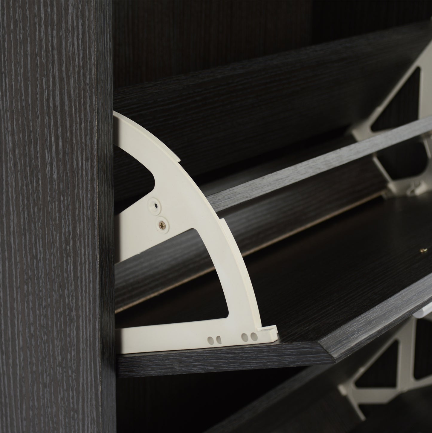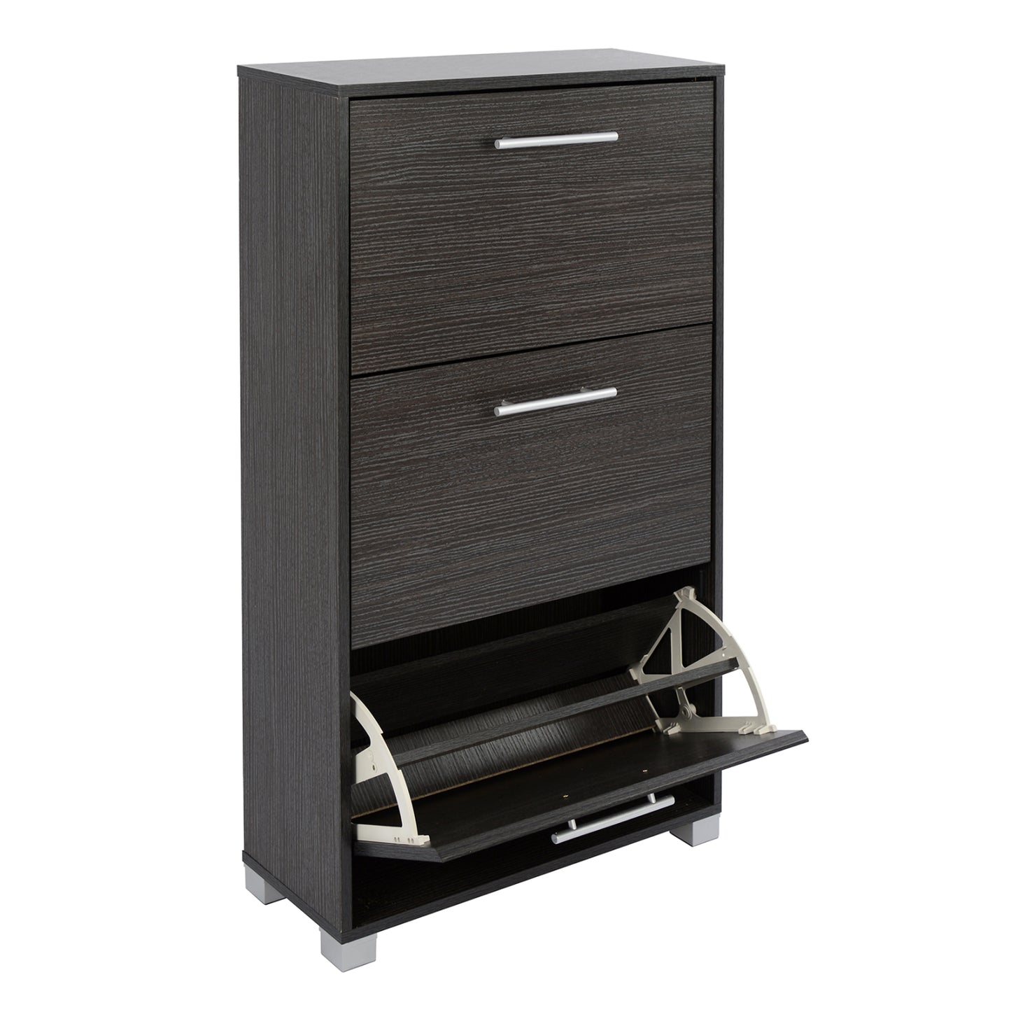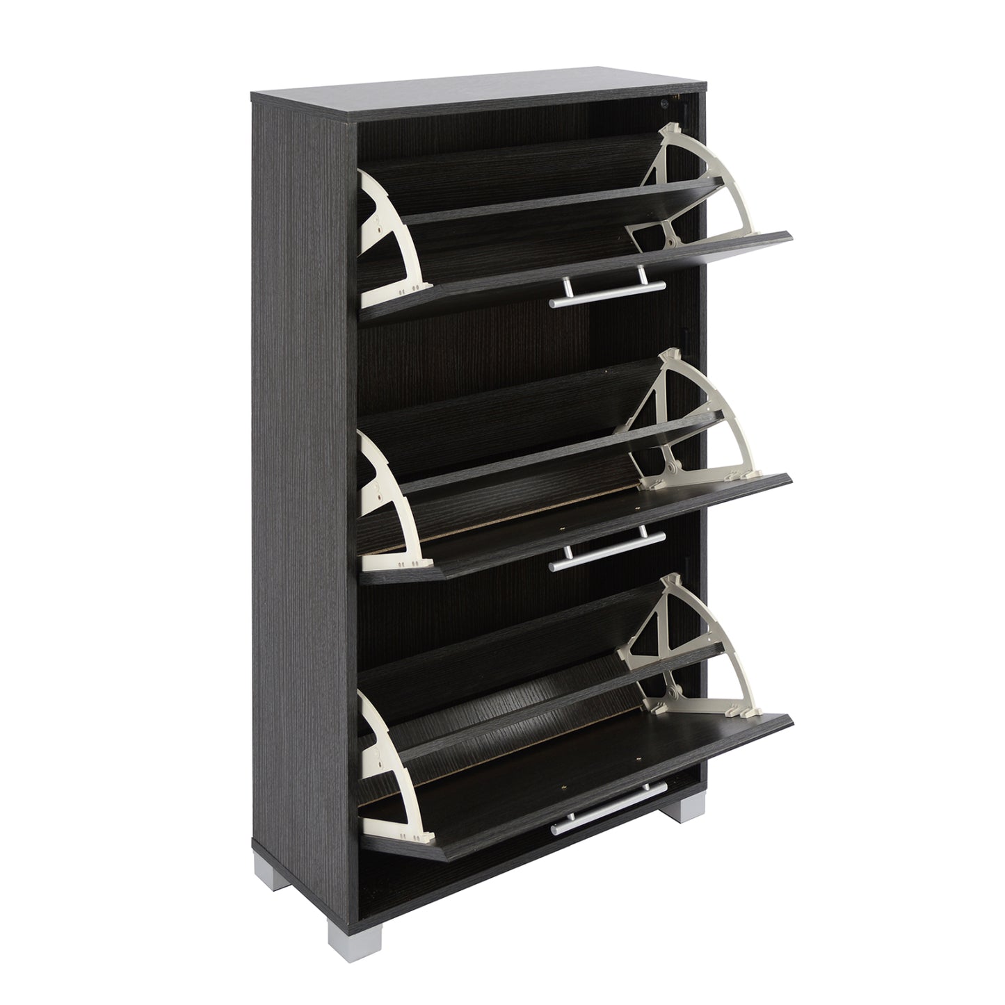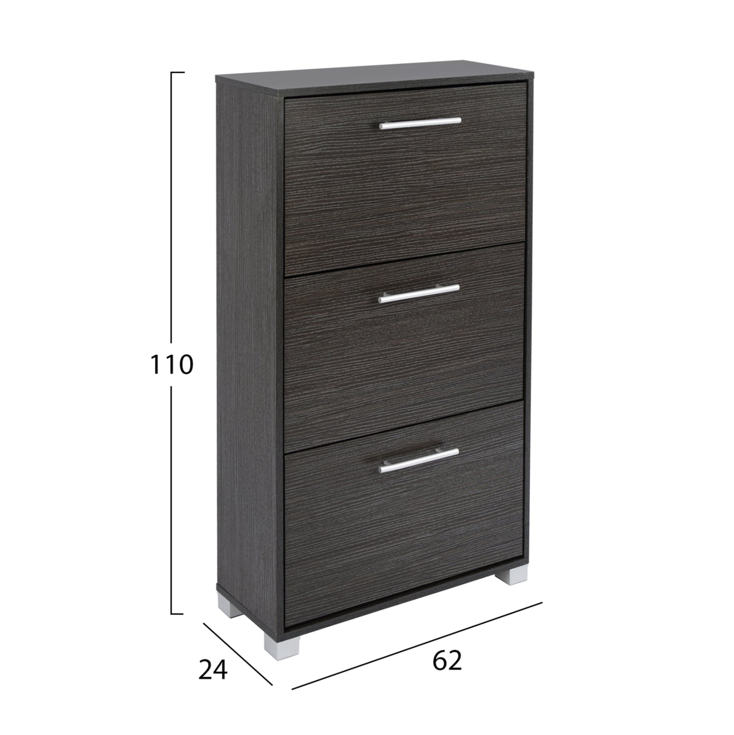 Παπουτσοθήκη από μελαμίνη άριστης ποιότητας, με 3 ανακλινόμενα ντουλάπια που χωράνε 18-21 ζευγάρια παπούτσια.