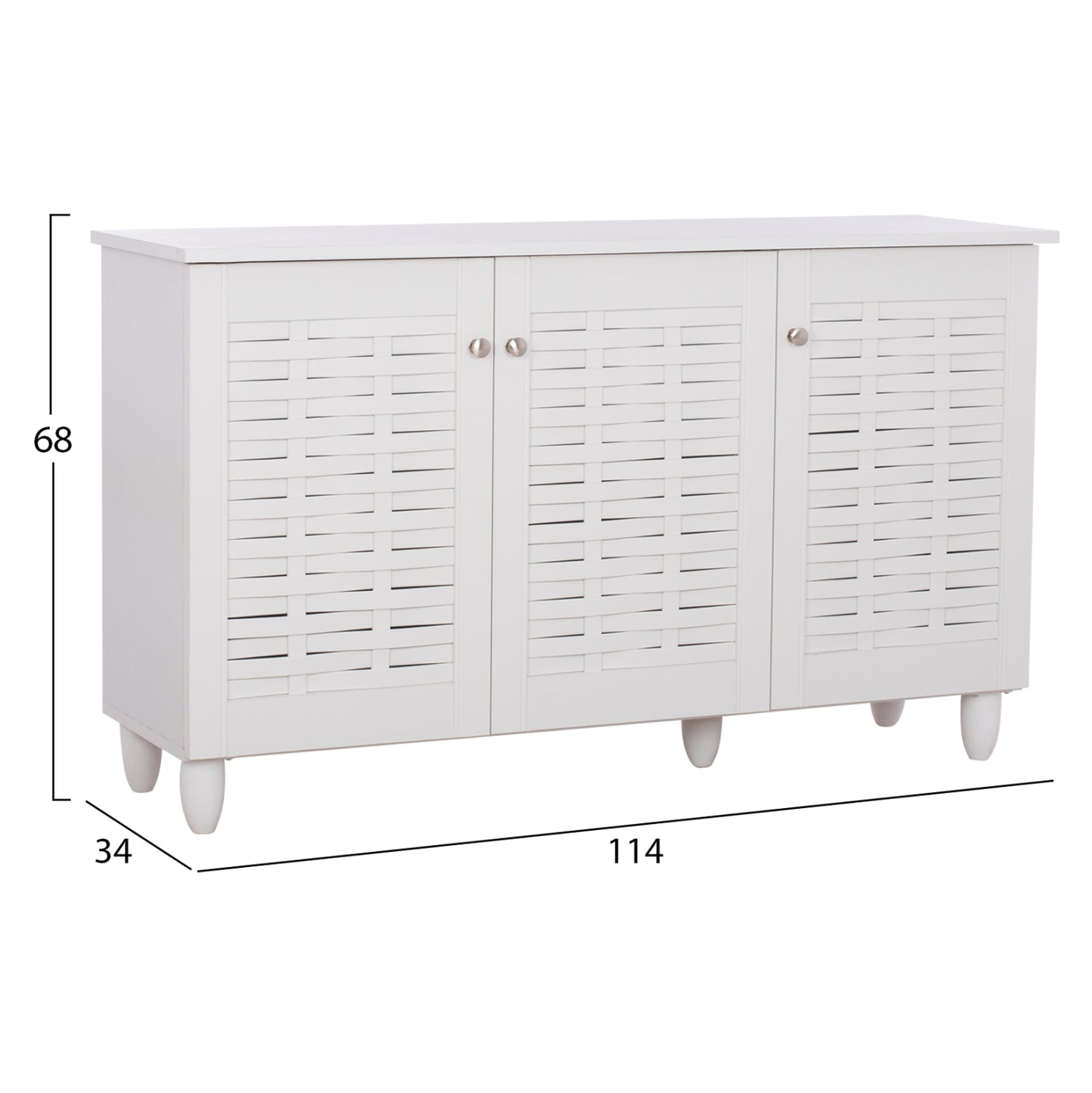 Παπουτσοθήκη σε λιτό-κλασικό σχεδιασμό, κατασκευασμένη από ανθεκτική μελαμίνη υψηλής ποιότητας, σε λευκή απόχρωση.