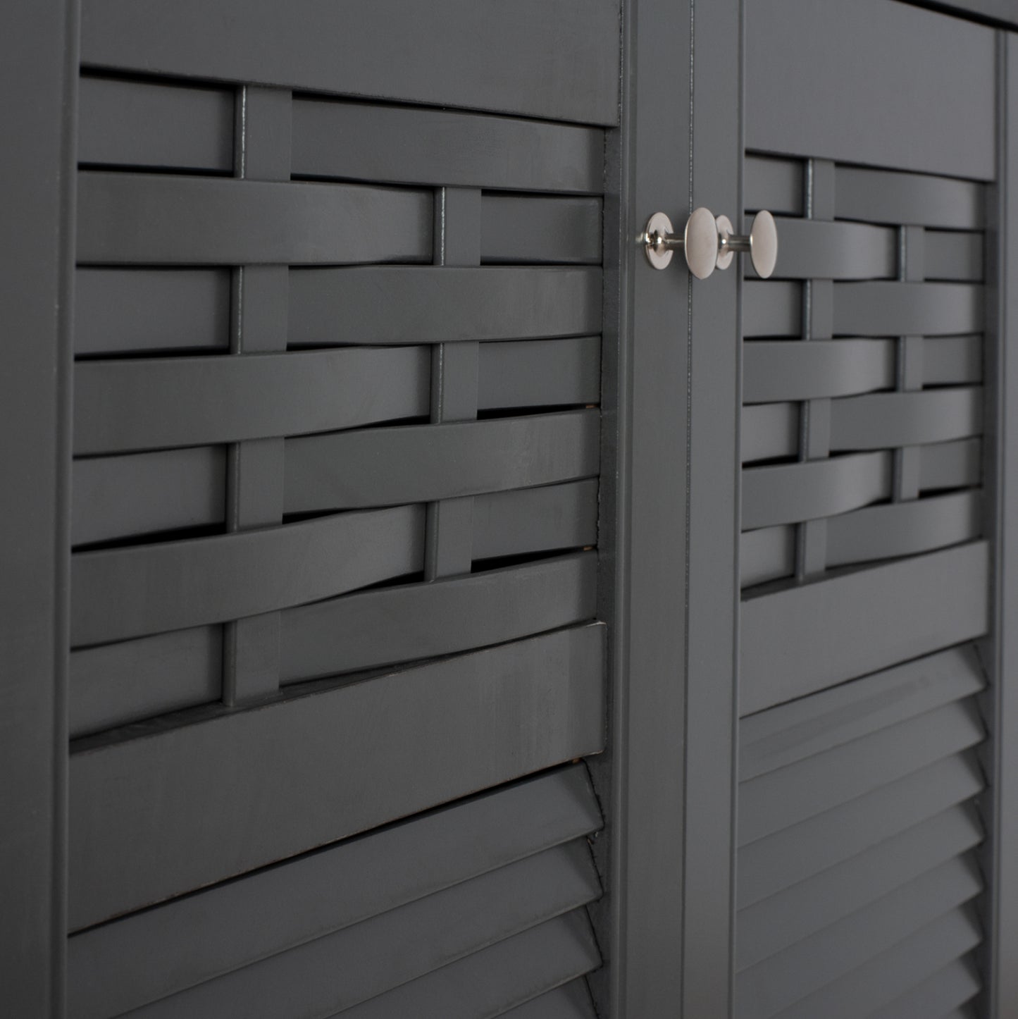 Παπουτσοθήκη- ντουλάπι σε λιτό-κλασικό σχεδιασμό, κατασκευασμένη από ανθεκτική μελαμίνη υψηλής ποιότητας, σε γκρι απόχρωση.