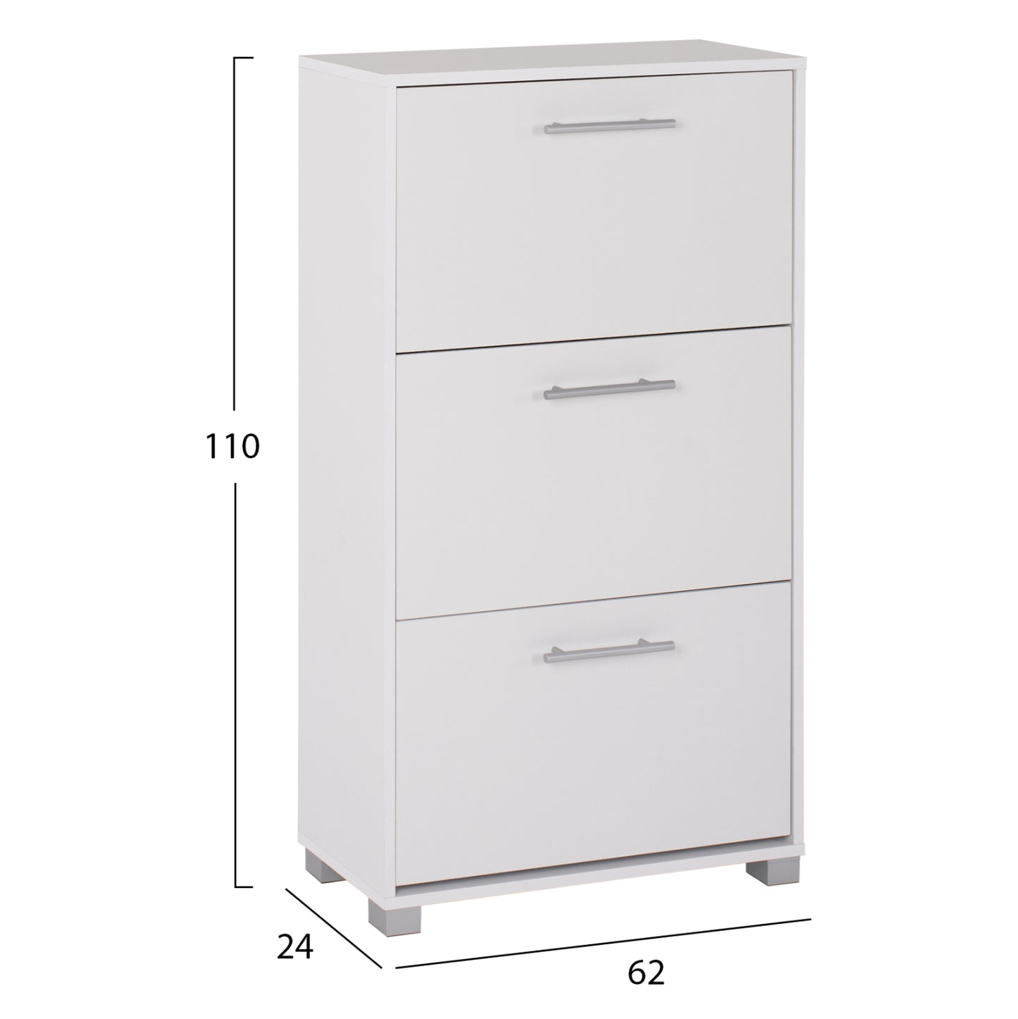 Σας αρέσει να είστε τακτοποιημένοι και καθαροί; Σας παρουσιάζουμε την παπουτσοθήκη μελαμίνης DAVINA σε ΛΕΥΚΟ χρώμα με γκρι πόδια, με 3 επίπεδα που ανοίγουν με όμορφα γκρι χερούλια. Το κάθε επίπεδο έχει ένα ράφι που δημιουργεί δύο χώρους για κάθετη τοποθέτηση των παπουτσιών. Σκοπός μας είναι να σας βοηθήσουμε να οργανώσετε και να βελτιώσετε με τον καλύτερο δυνατό τρόπο την λειτουργικότητα του σπιτιού σας.