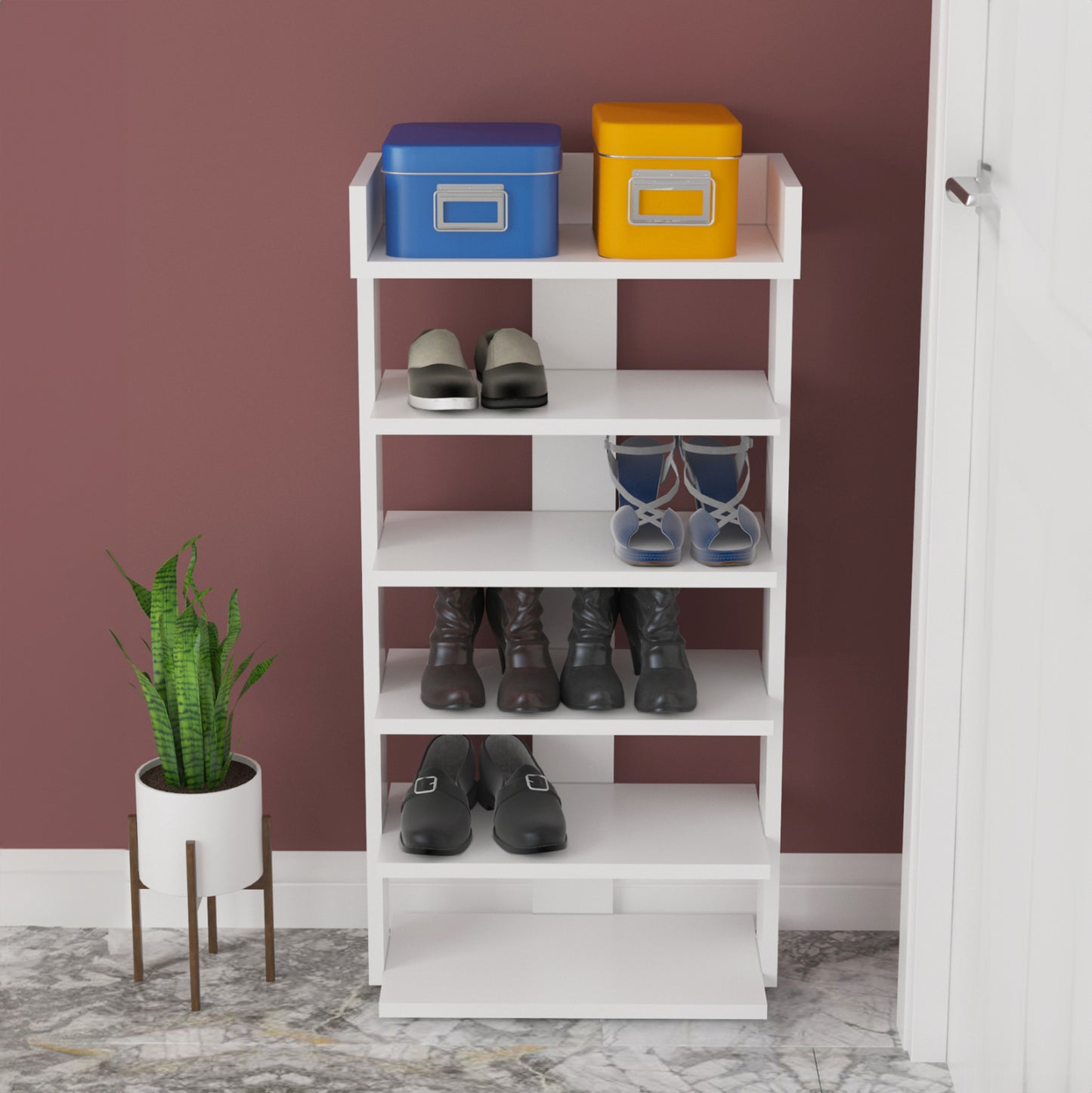 Τακτοποιήστε την είσοδο του σπιτιού σας με την όμορφη παπουτσοθήκη μελαμίνης RIBBER σε ΛΕΥΚΟ χρώμα. Η παπουτσοθήκη είναι σε στυλ ραφιέρας με 5 ανοιχτά ράφια τοποθέτησης παπουτσιών κι ένα ακόμα ράφι στο επάνω μέρος για τοποθέτηση άλλων αντικειμένων. Σκοπός μας είναι να σας βοηθήσουμε να οργανώσετε και να βελτιώσετε με τον καλύτερο δυνατό τρόπο την λειτουργικότητα του σπιτιού σας.