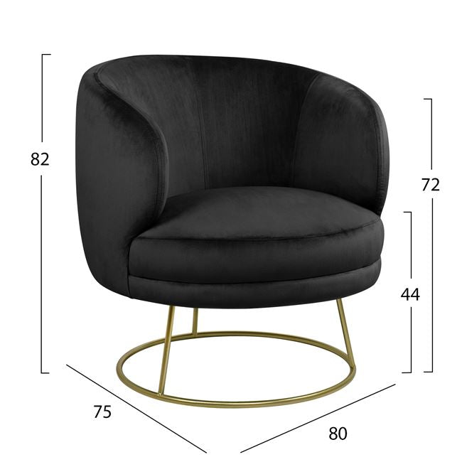 Η πολυθρόνα ΗΜ8403.04 είναι μια μοντέρνα και στιλάτη πολυθρόνα που θα αφήσει το στίγμα της σε όποιο σαλόνι κι αν τοποθετηθεί. Το στρογγυλό της σχήμα με την στρογγυλή μεταλλική της βάση, σε συνδυασμό με την χαμηλή πλάτη και τα ισοϋψή μπράτσα, «αγκαλιάζουν» το σώμα και προσφέρουν άνεση και στυλ. Το επιβλητικό ΜΑΥΡΟ χρώμα με το χρυσό της βάσης μπορεί να συνδυαστεί με πληθώρα άλλων χρωμάτων στην διακόσμηση του σαλονιού.
